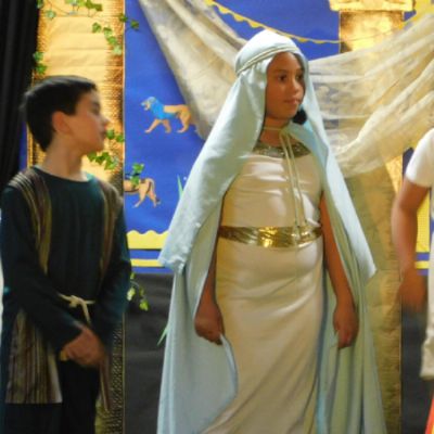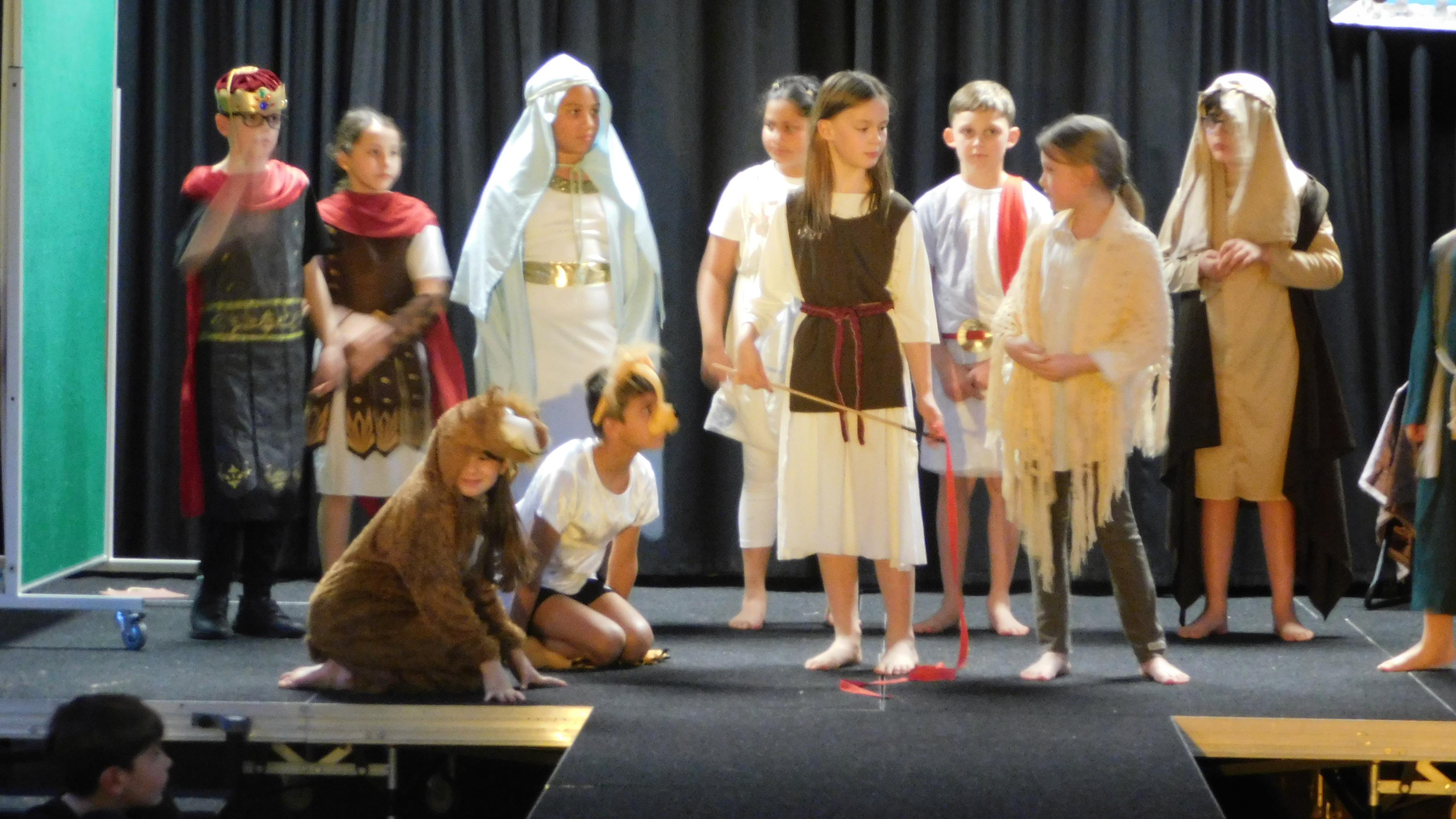 Year 3 and 4 went back to the old testament for their annual performance this year. 'Daniel, a Hard Act to Swallow' tells the story of 'Daniel in the Lions' Den'. In this Bible story Daniel is the king's favourite, much to the annoyance of some rivals. Daniel believes in God and will not worship the Babylonian gods. The rivals hatch a plan to make it illegal to worship any other gods and when Daniel is caught praying, he is sent to the lion pit, much to the distress of the king. God sends an angel to calm the lions and Daniel's life is saved.
