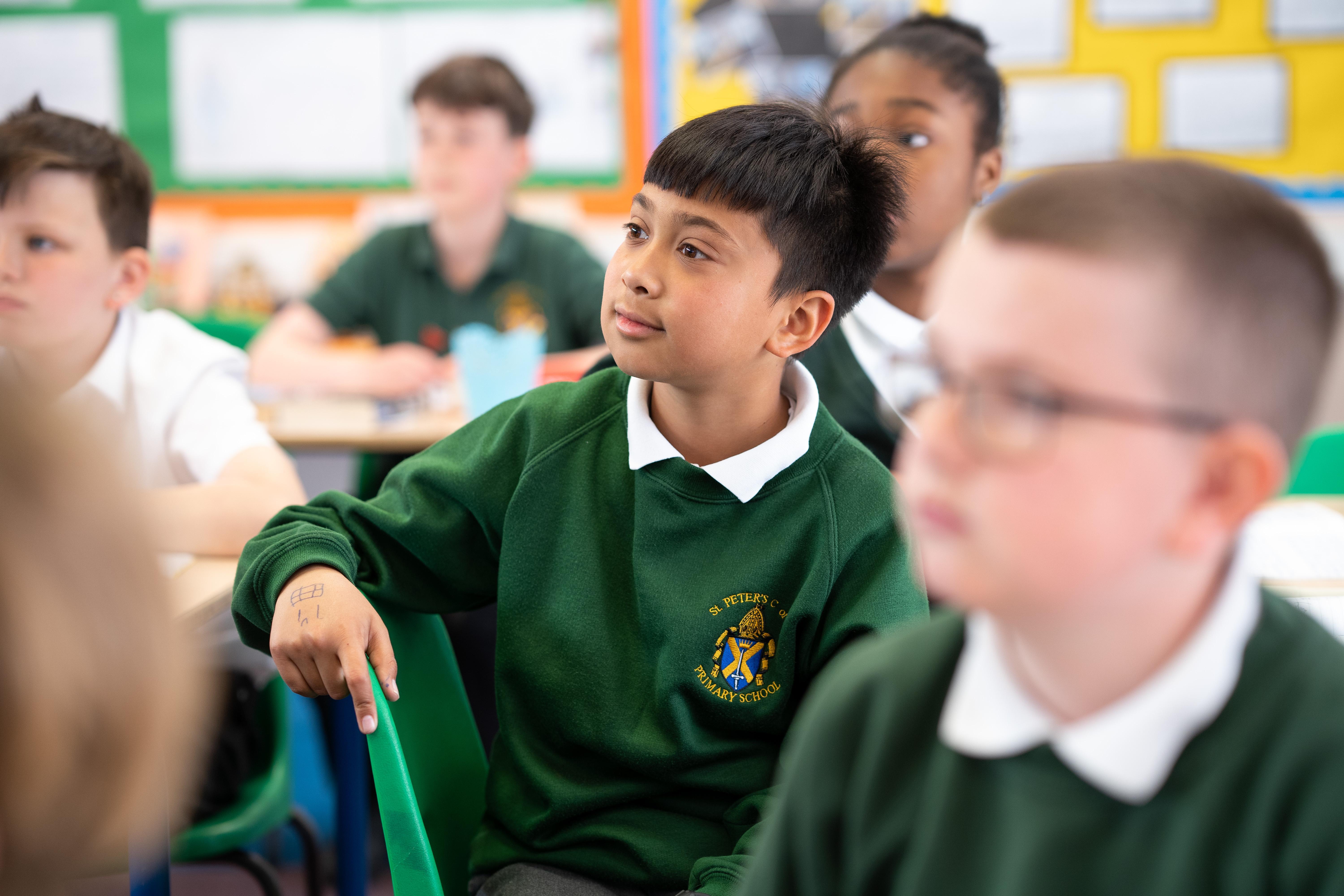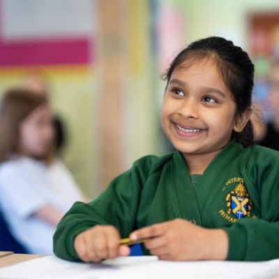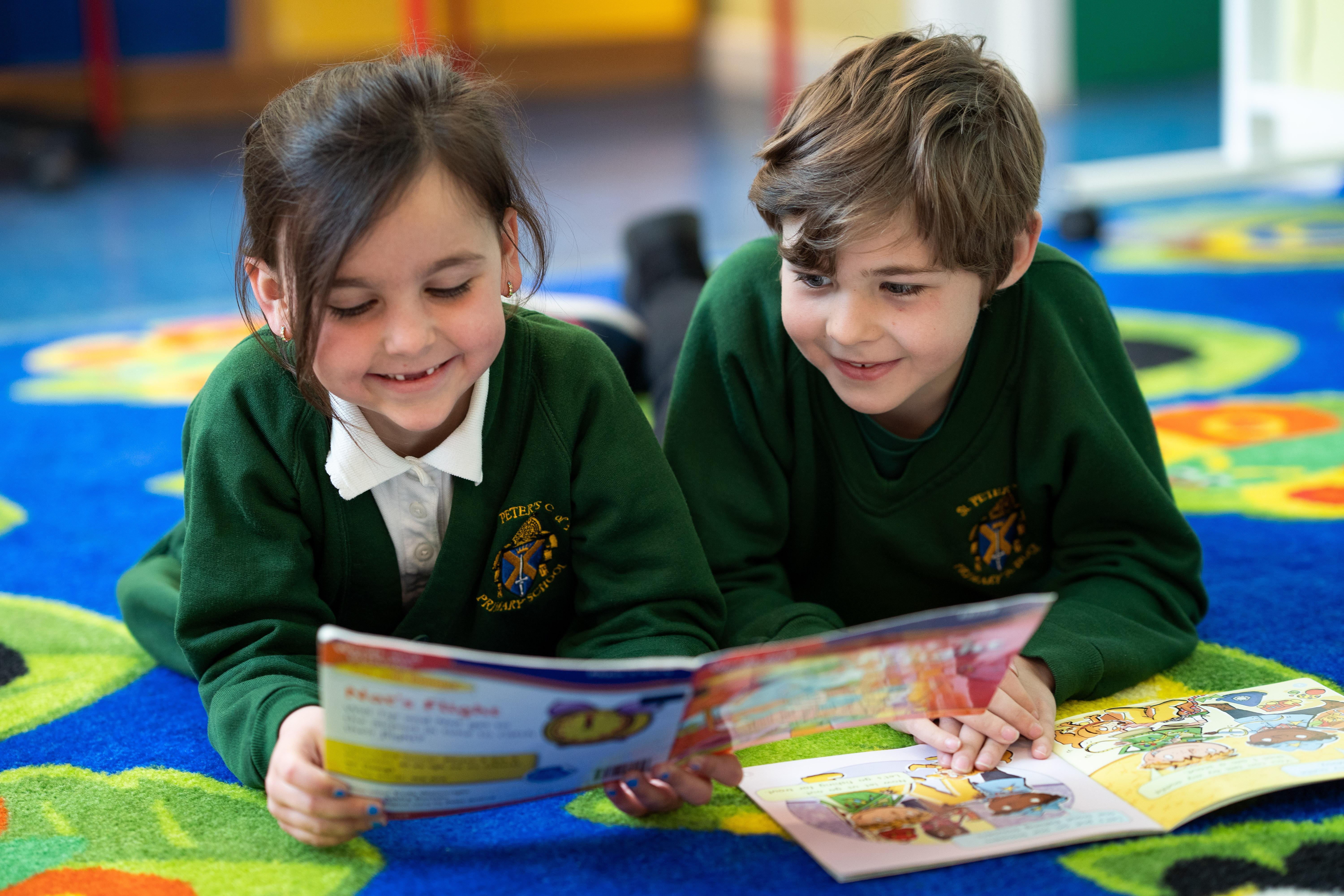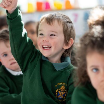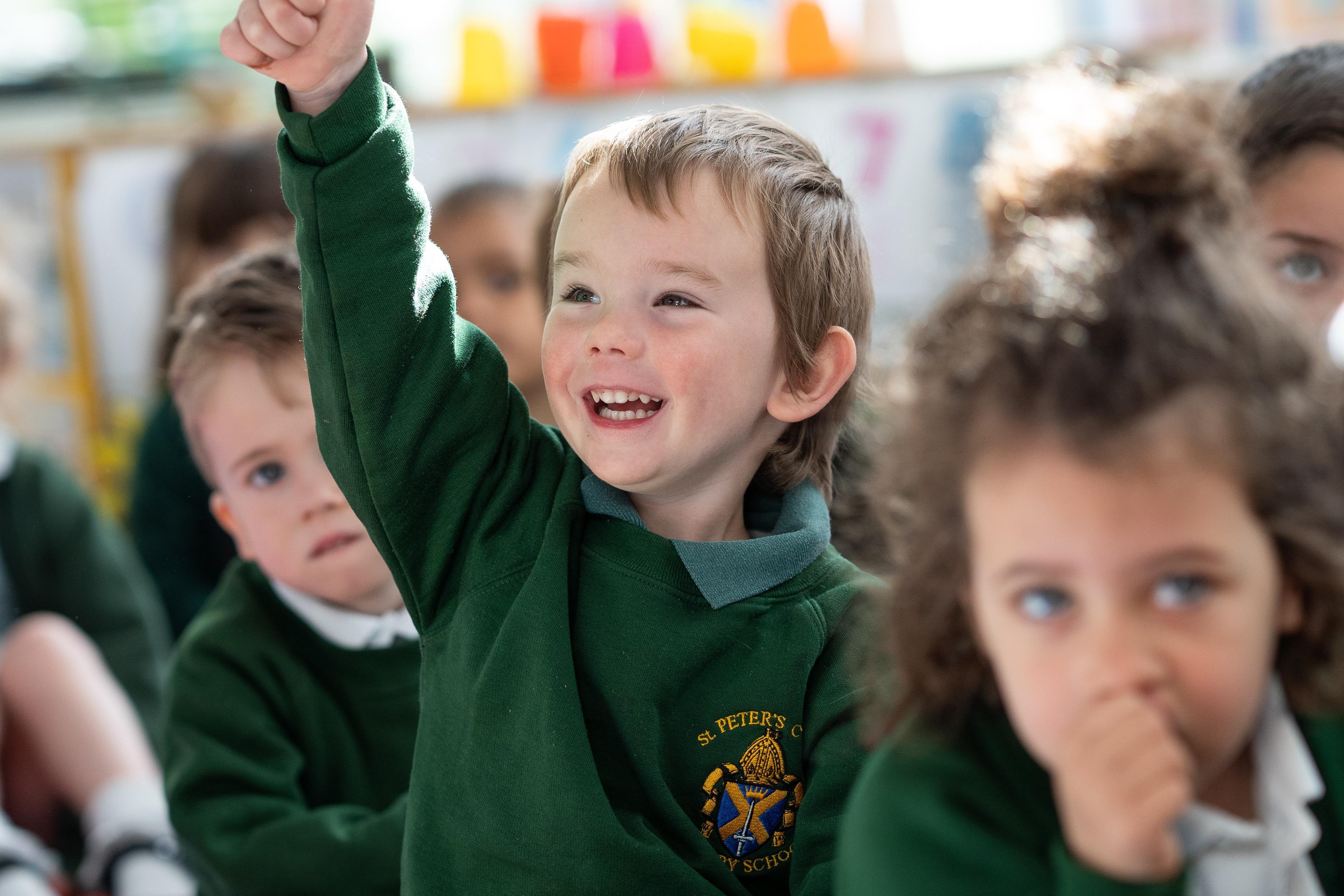 Please look at some of the pictures below. These pictures show all of our children happy and flourishing. At St. Peter's, we pride ourselves on having the vision of, "One Family, Aiming High, Learning Together with God." These images clearly show our vision in action.