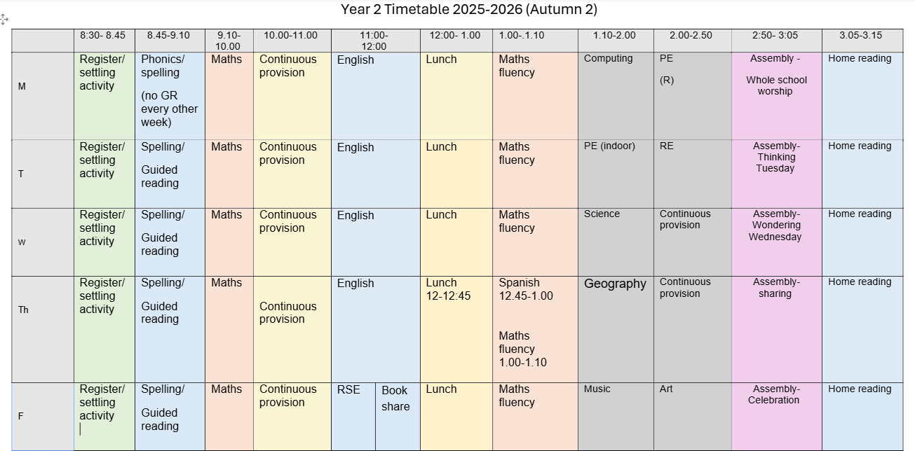 This half-term, PE will take place on Mondays and Tuesday. Children are required to come into school wearing PE kit on both days.
