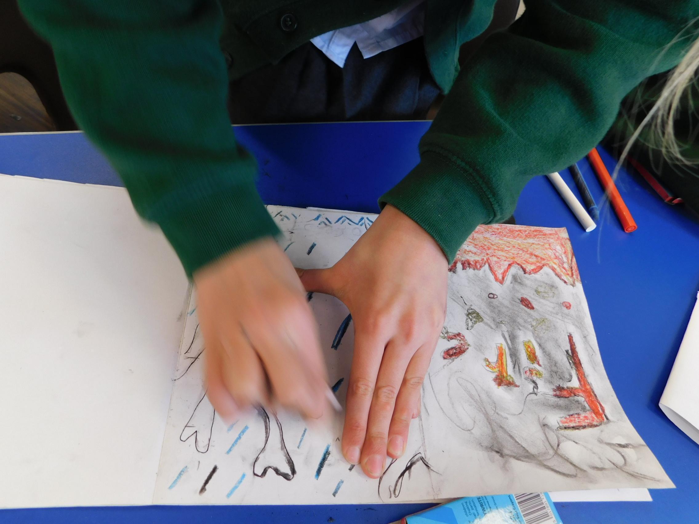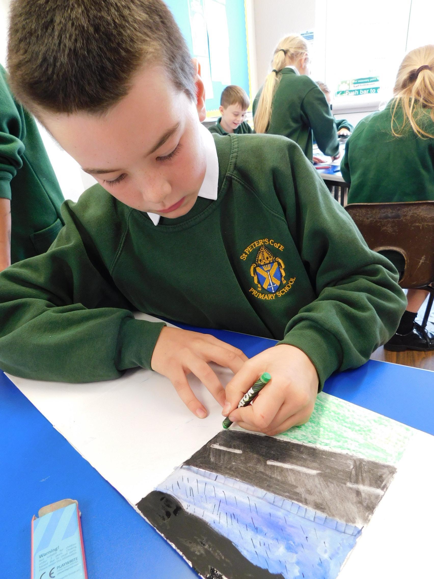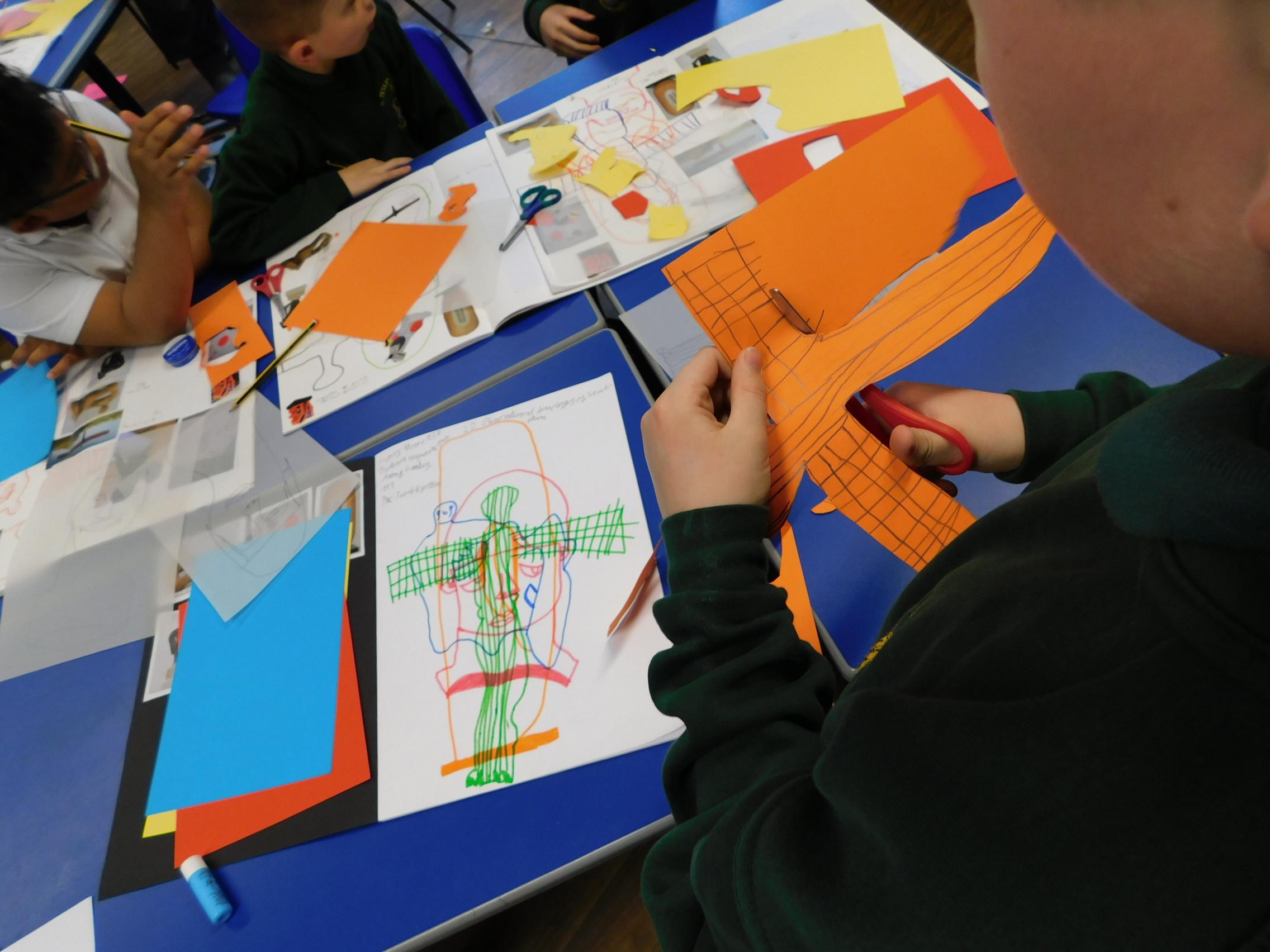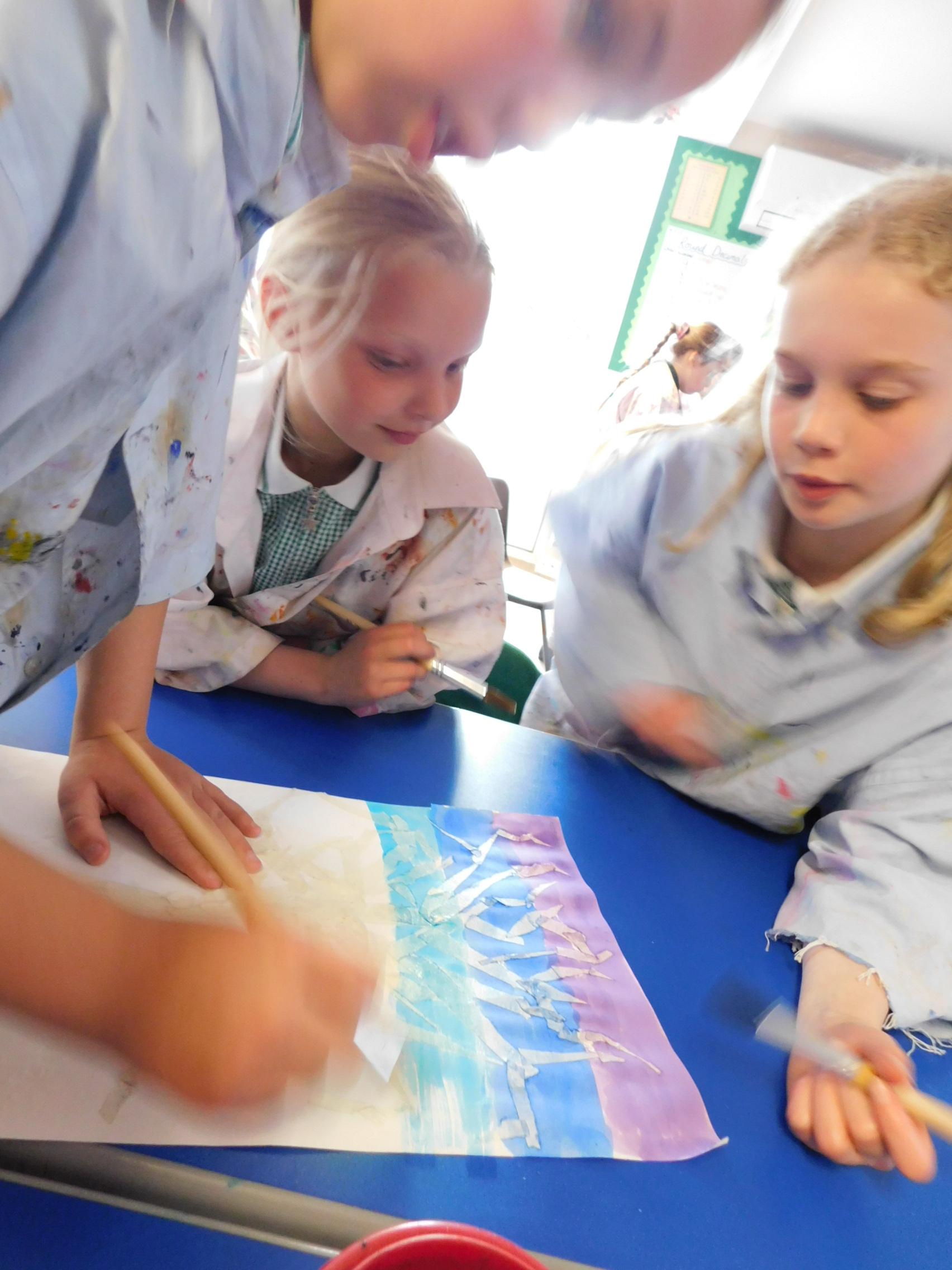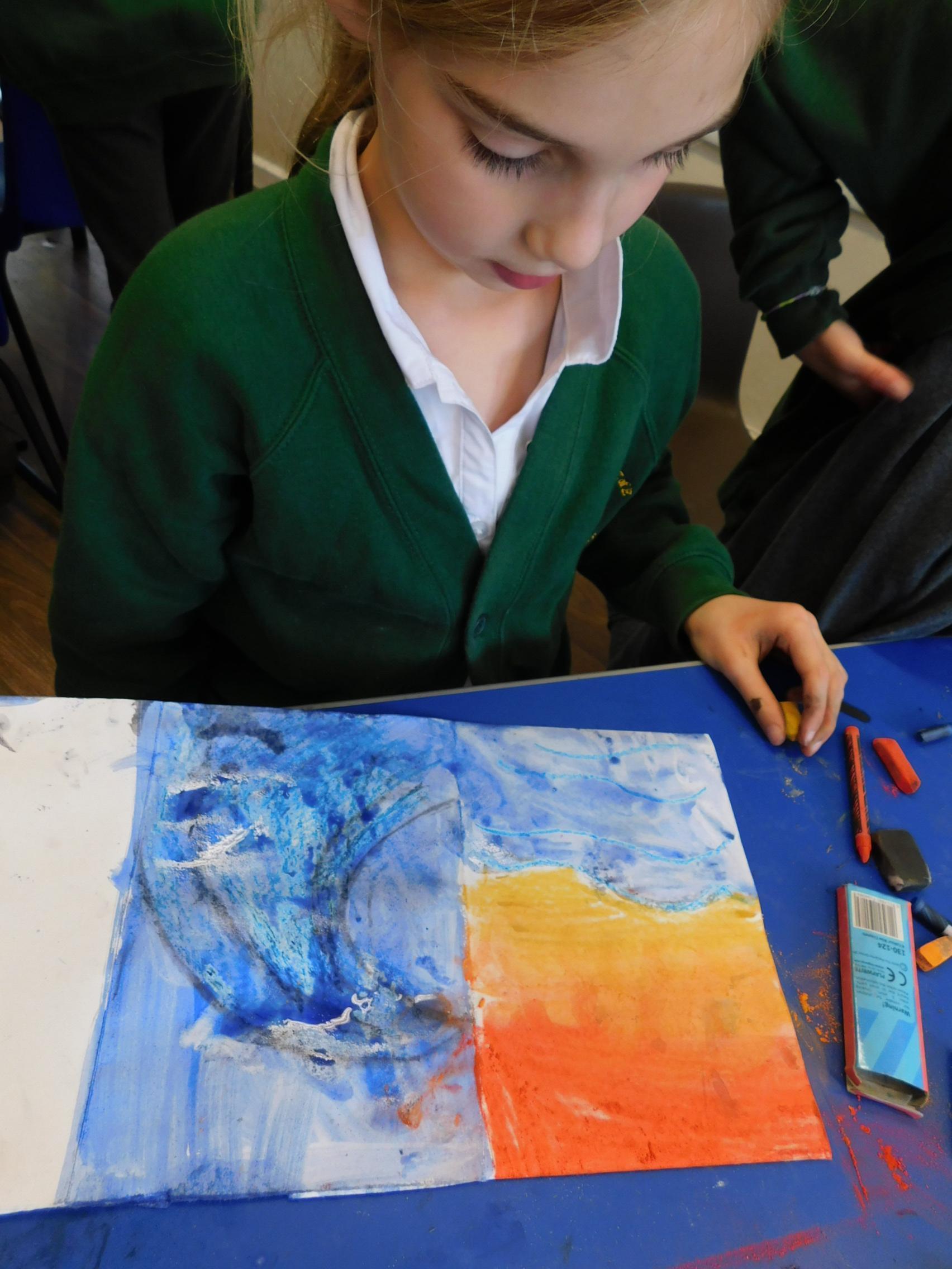 Observational drawing and colourful mark-making from primary and secondary sources, based on our playground trees and British birds.