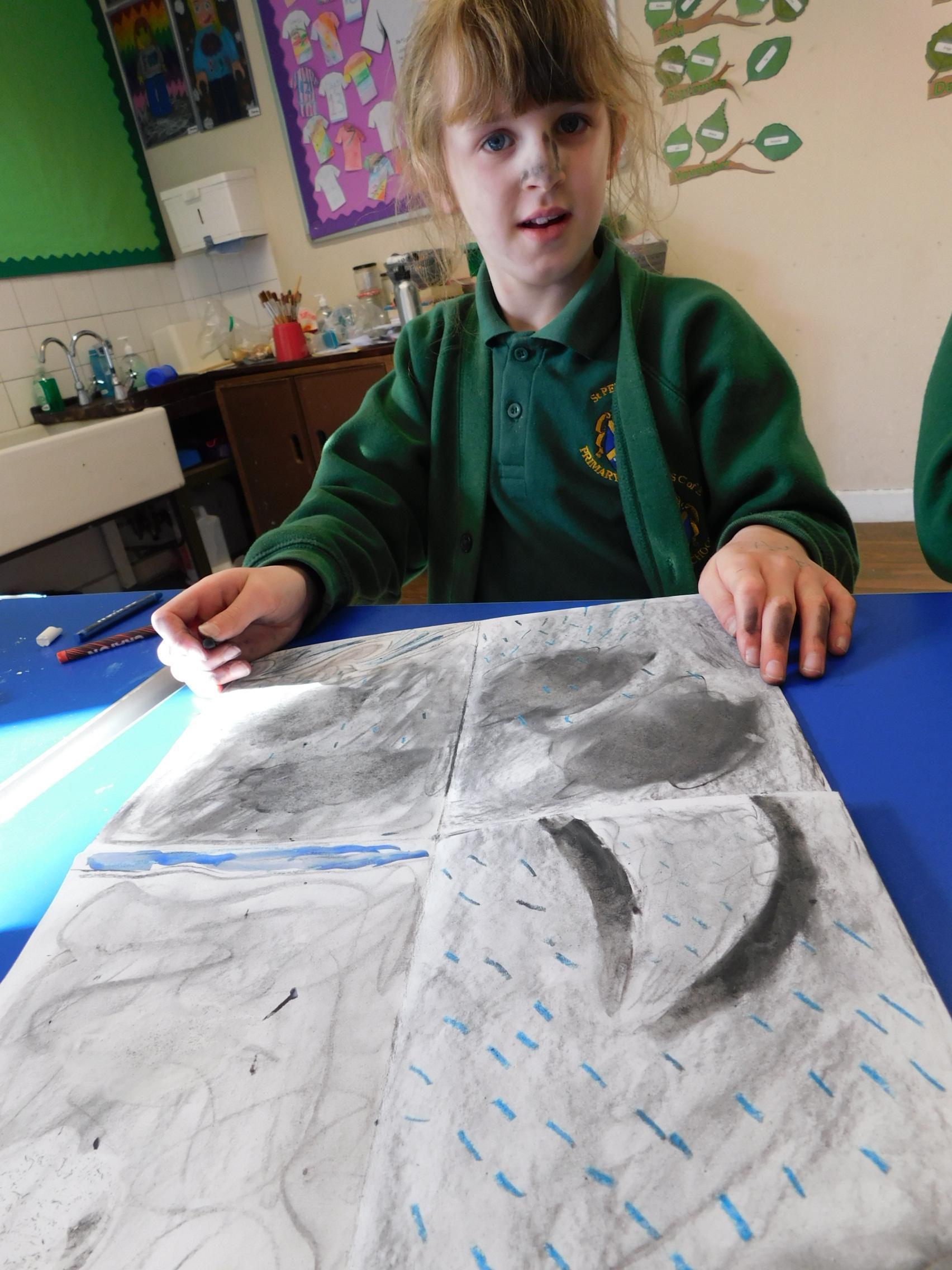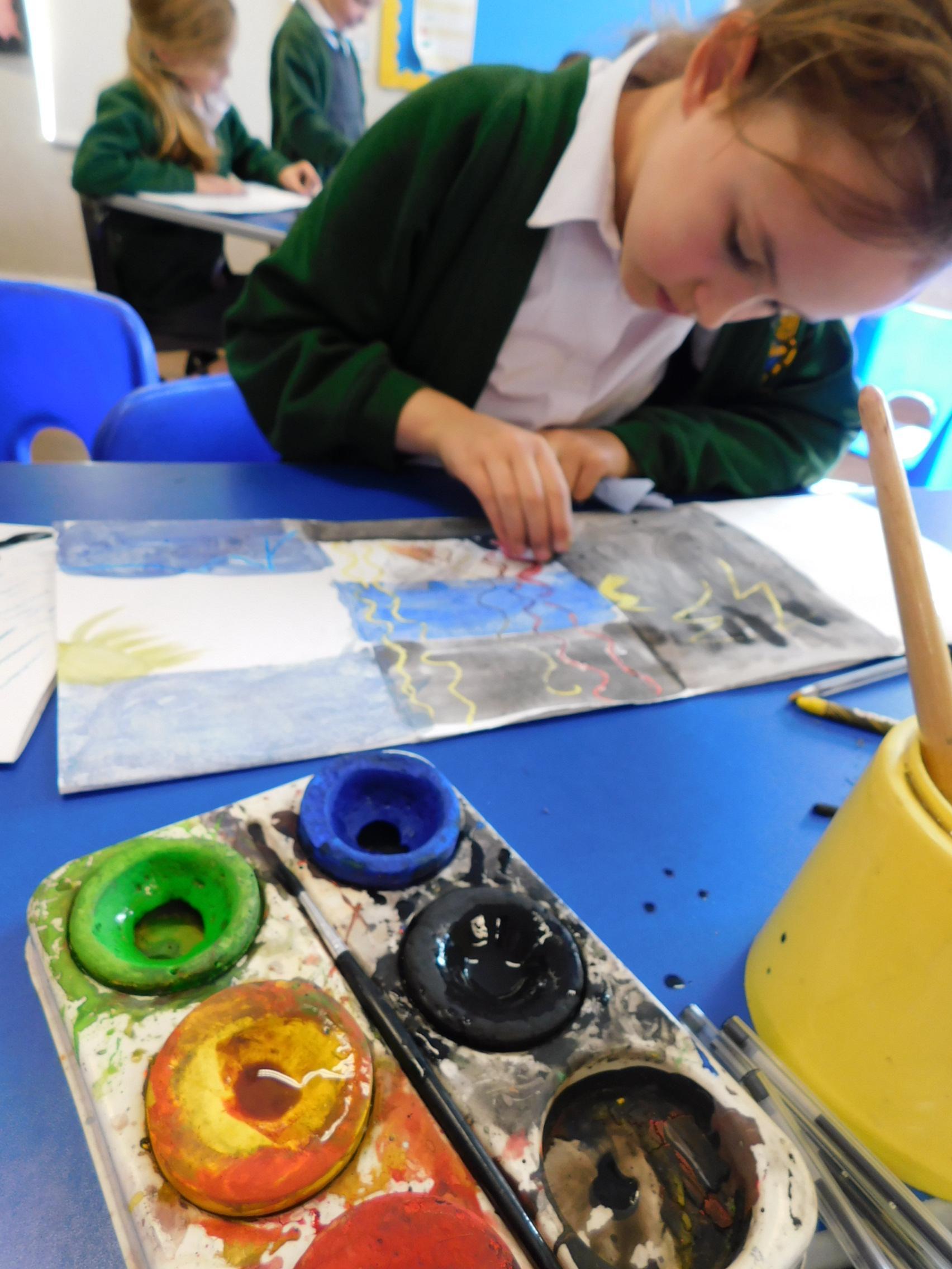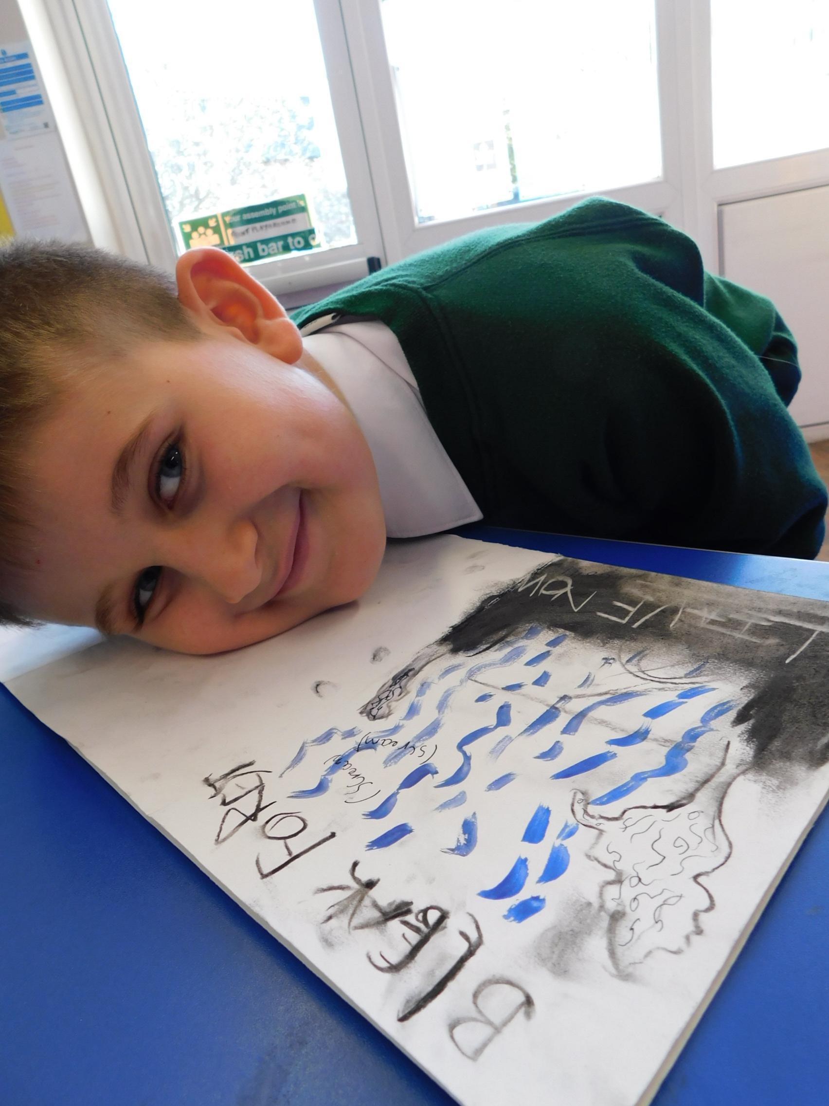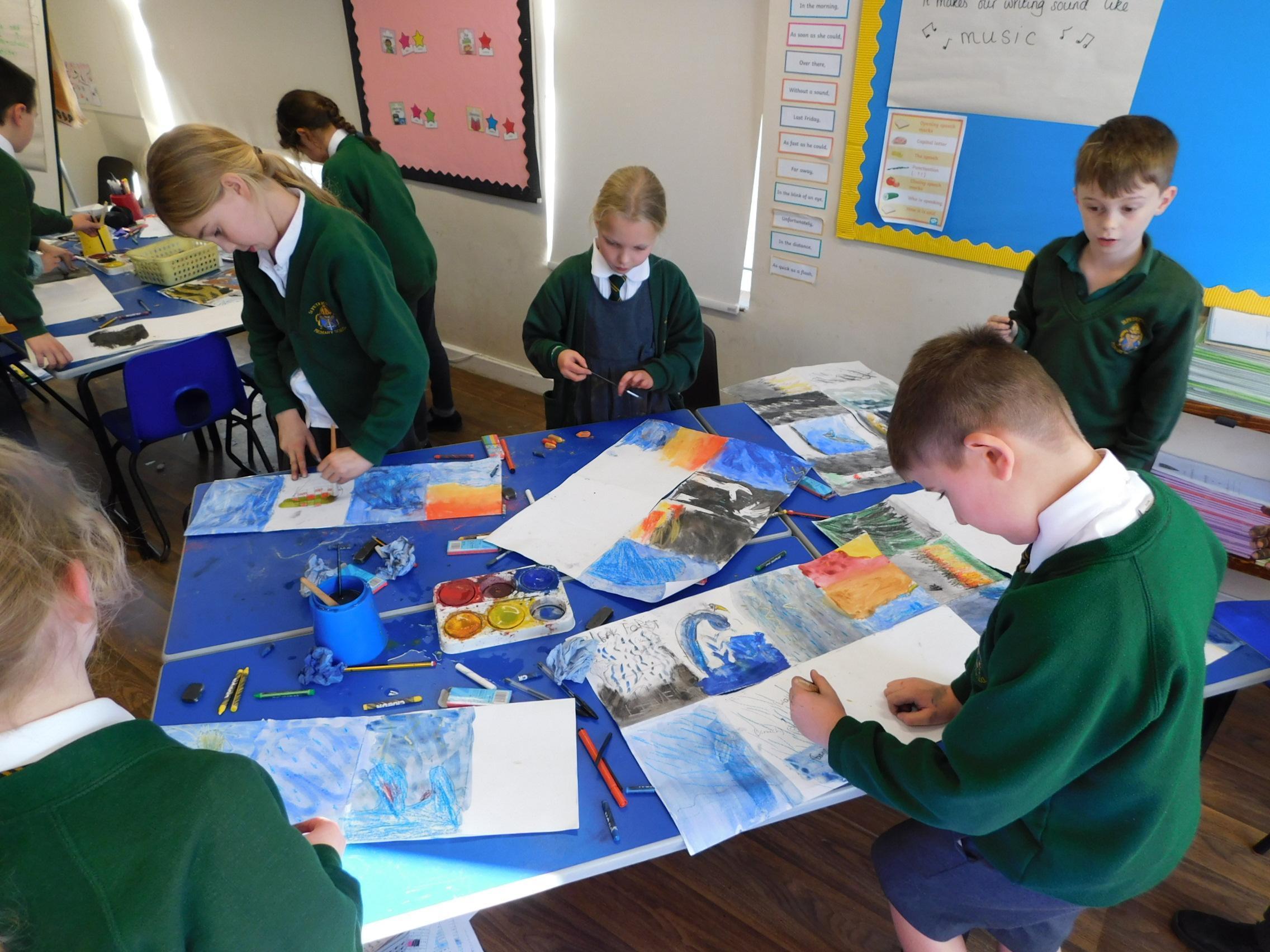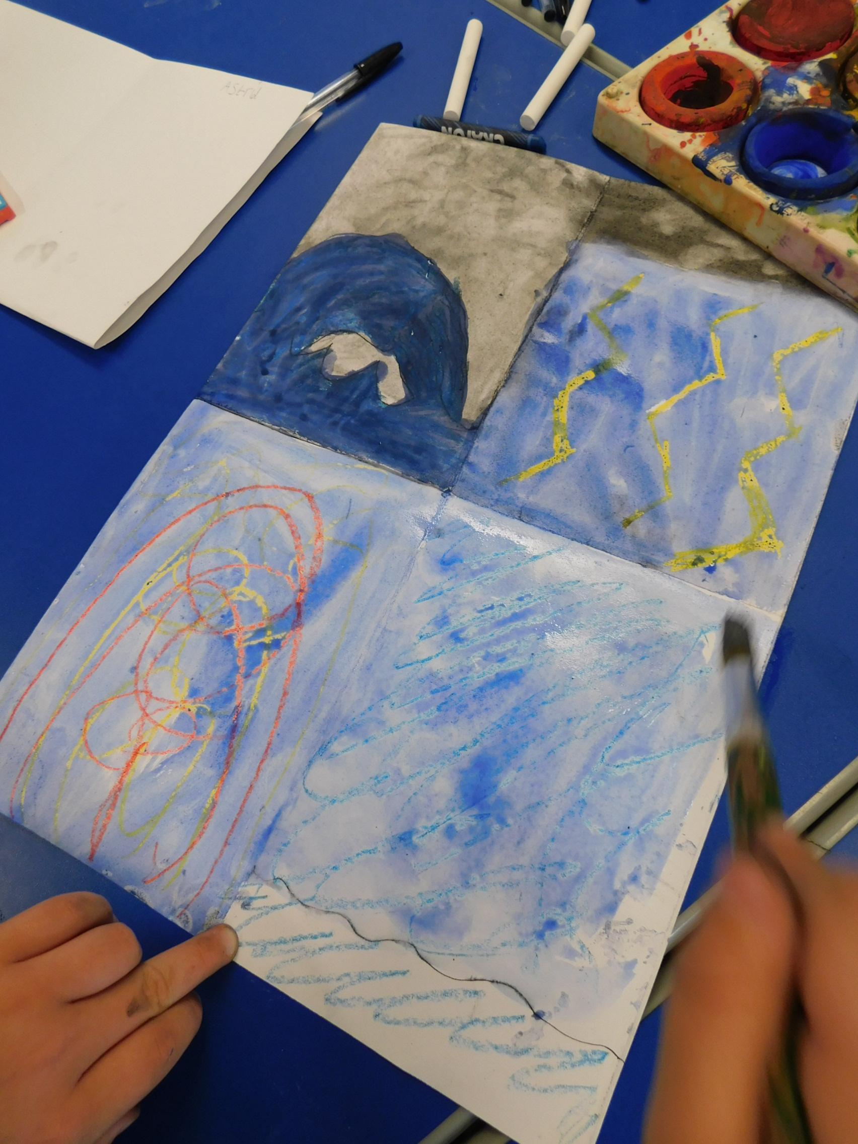 Observational drawing and colourful mark-making from primary and secondary sources, based on our playground trees and British birds.