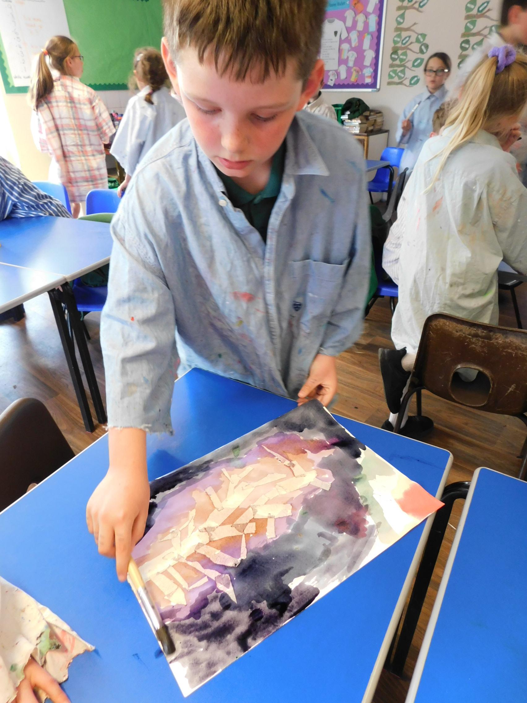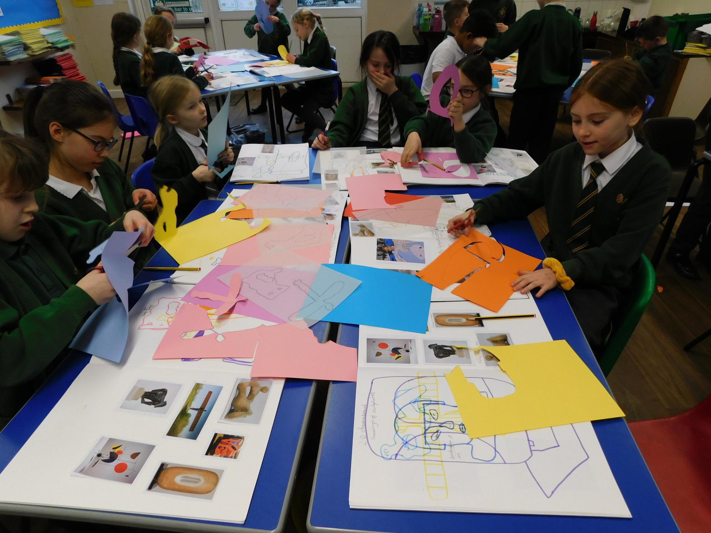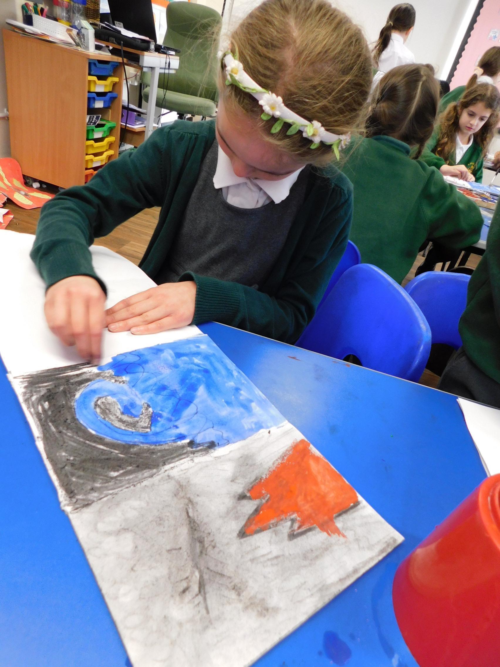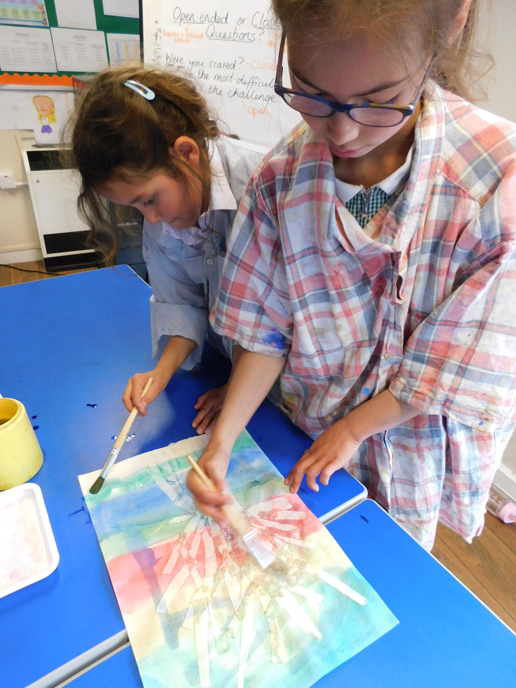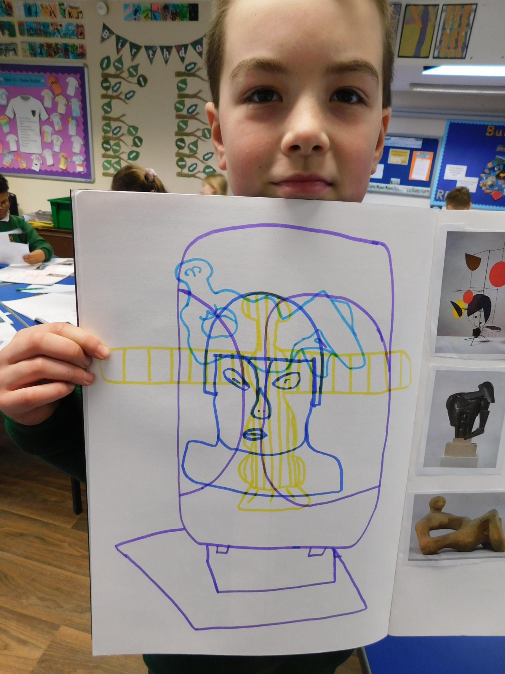 Observational drawing and colourful mark-making from primary and secondary sources, based on our playground trees and British birds.