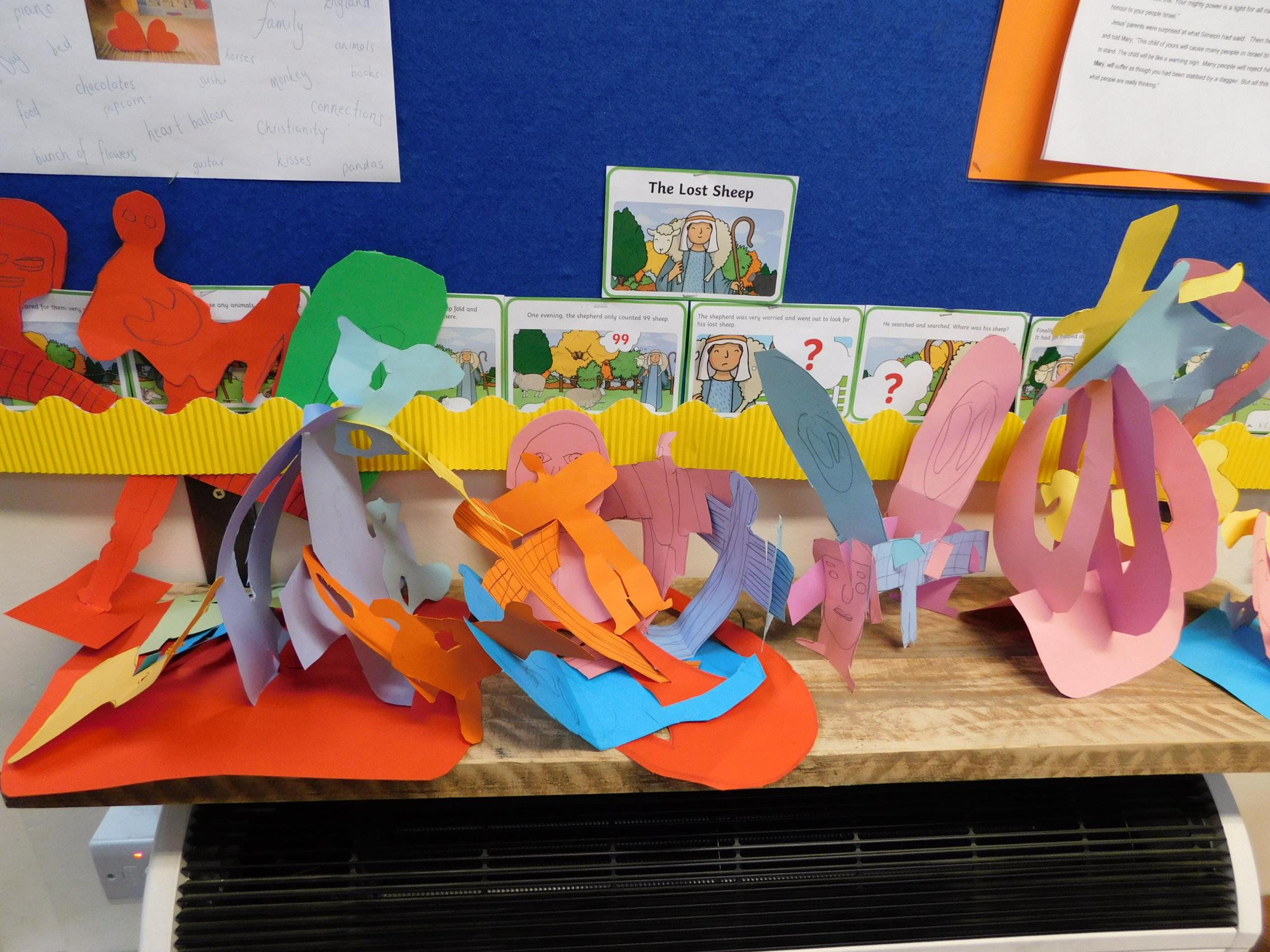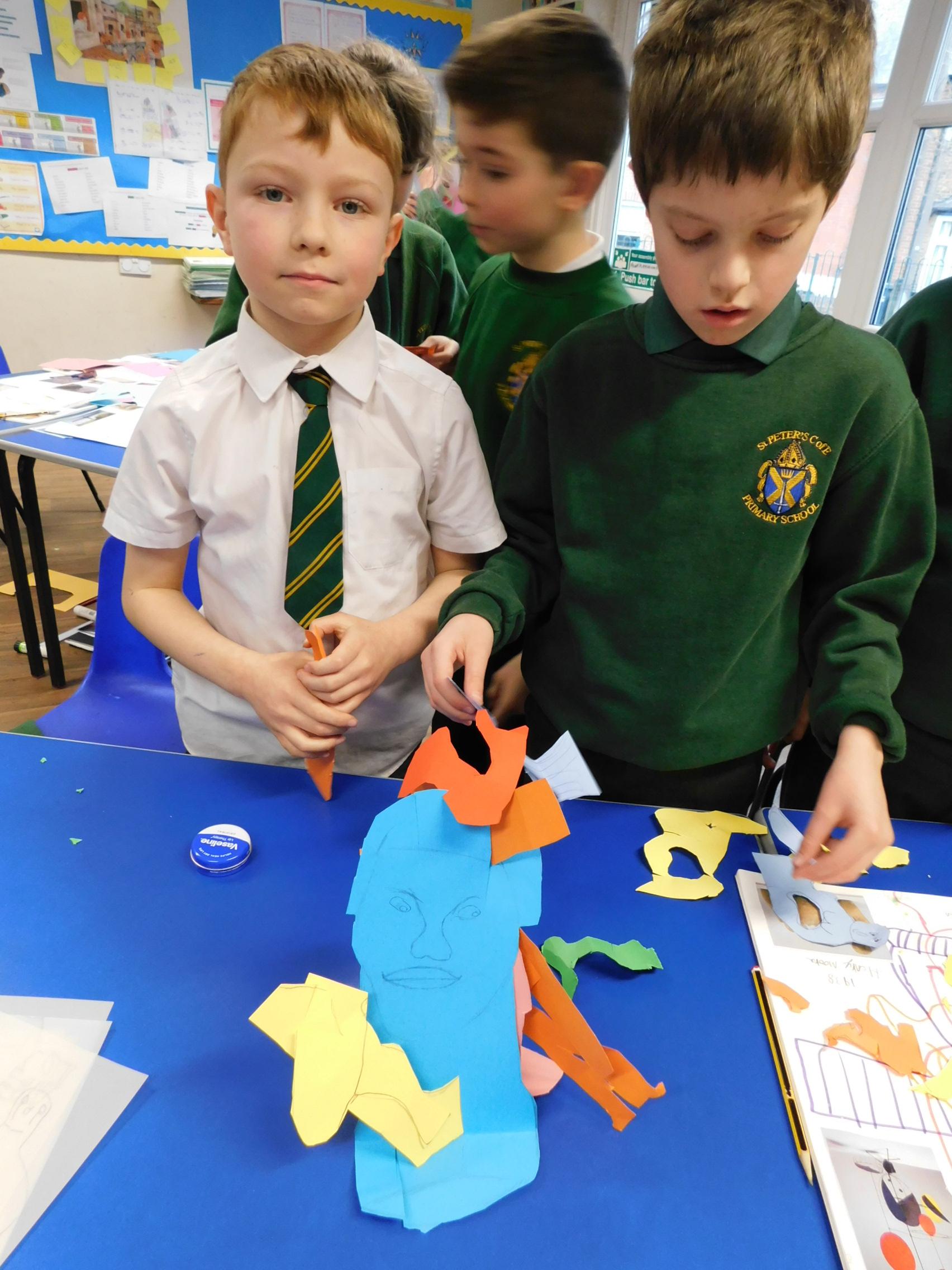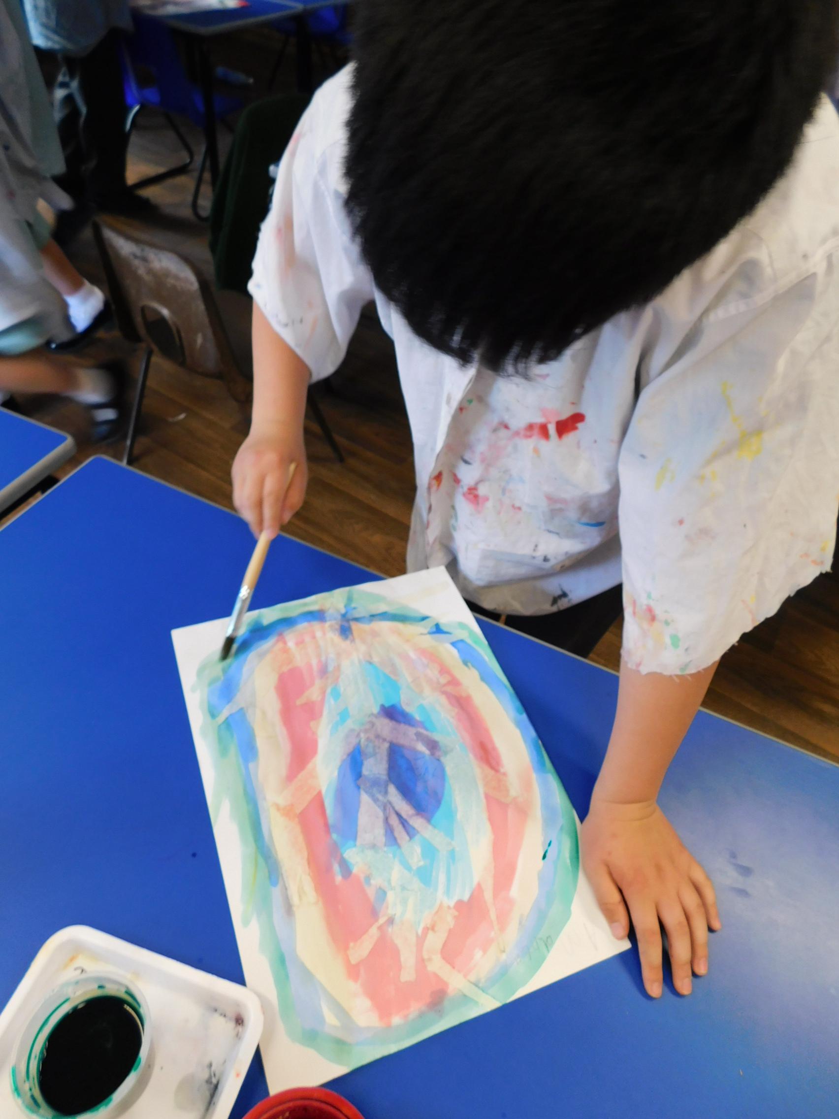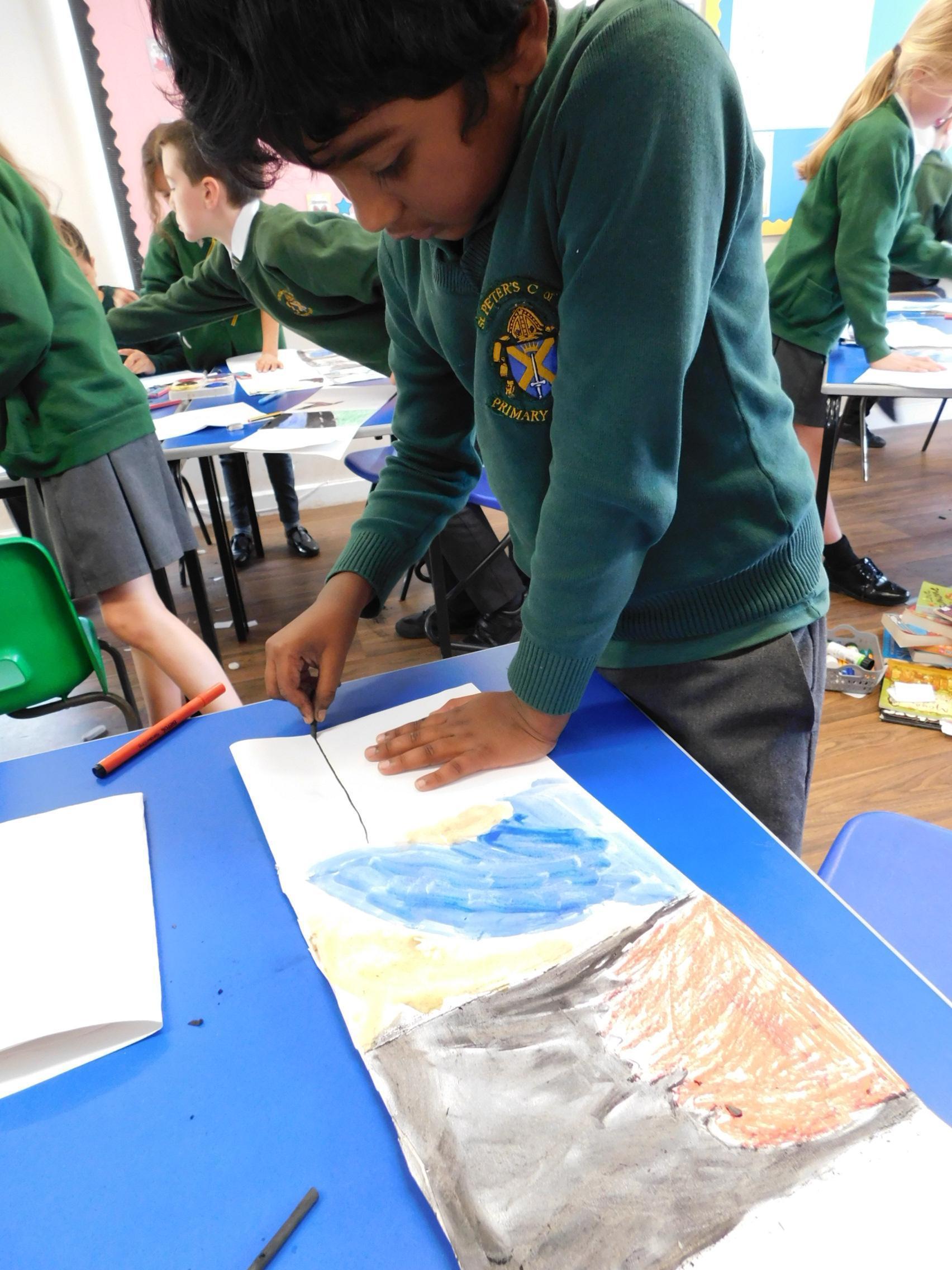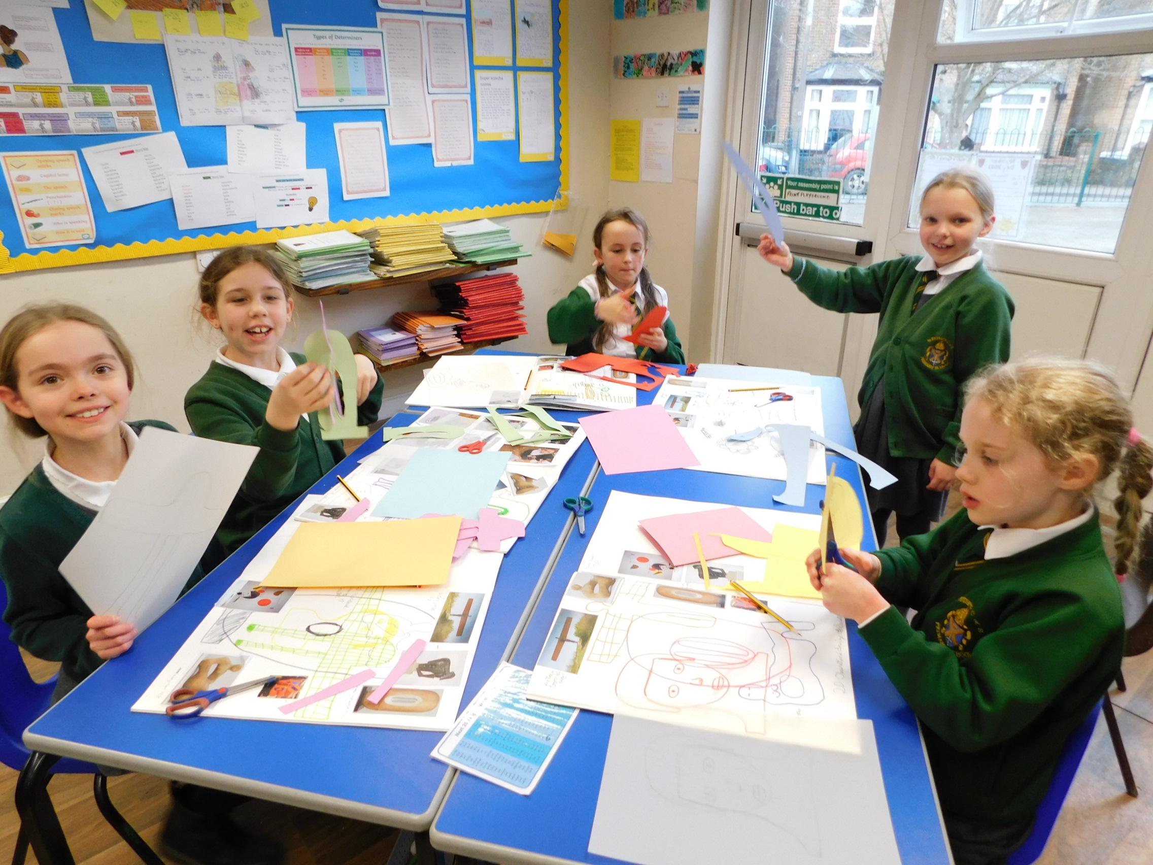 Observational drawing and colourful mark-making from primary and secondary sources, based on our playground trees and British birds.