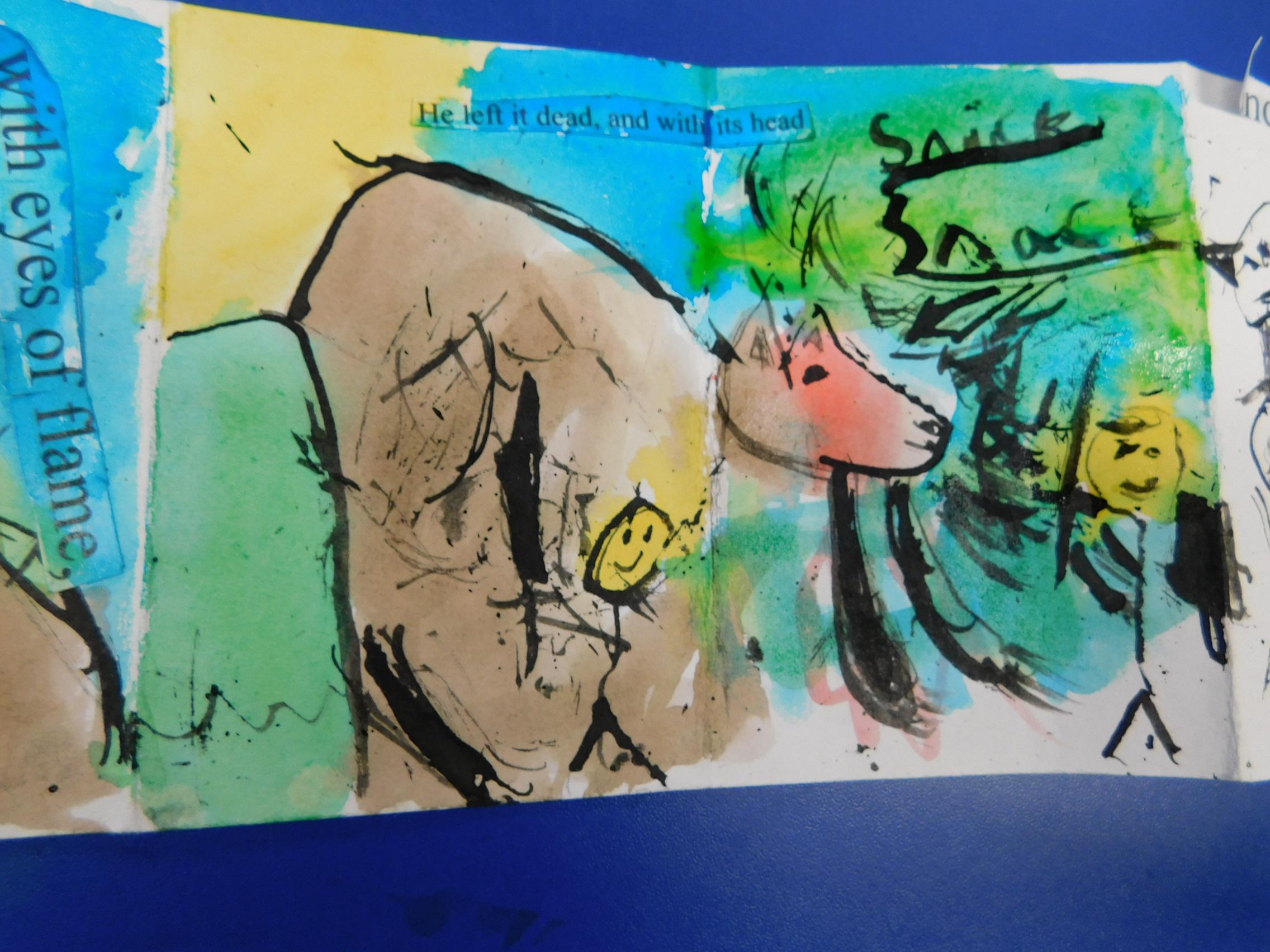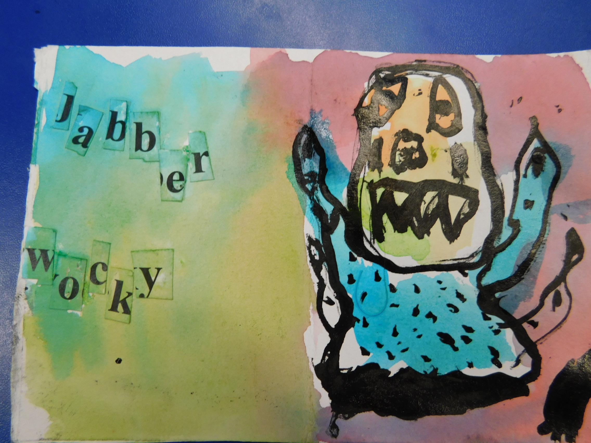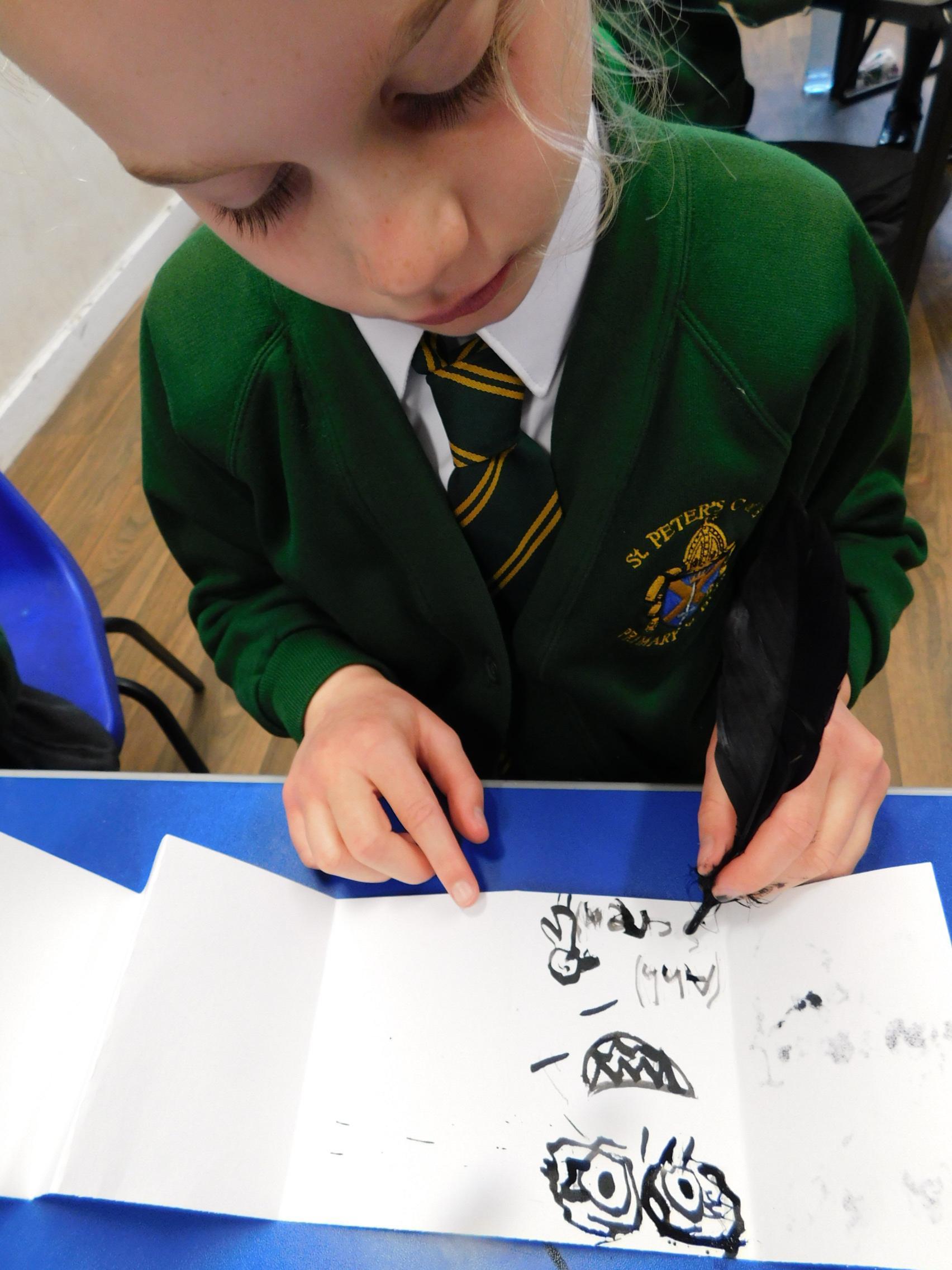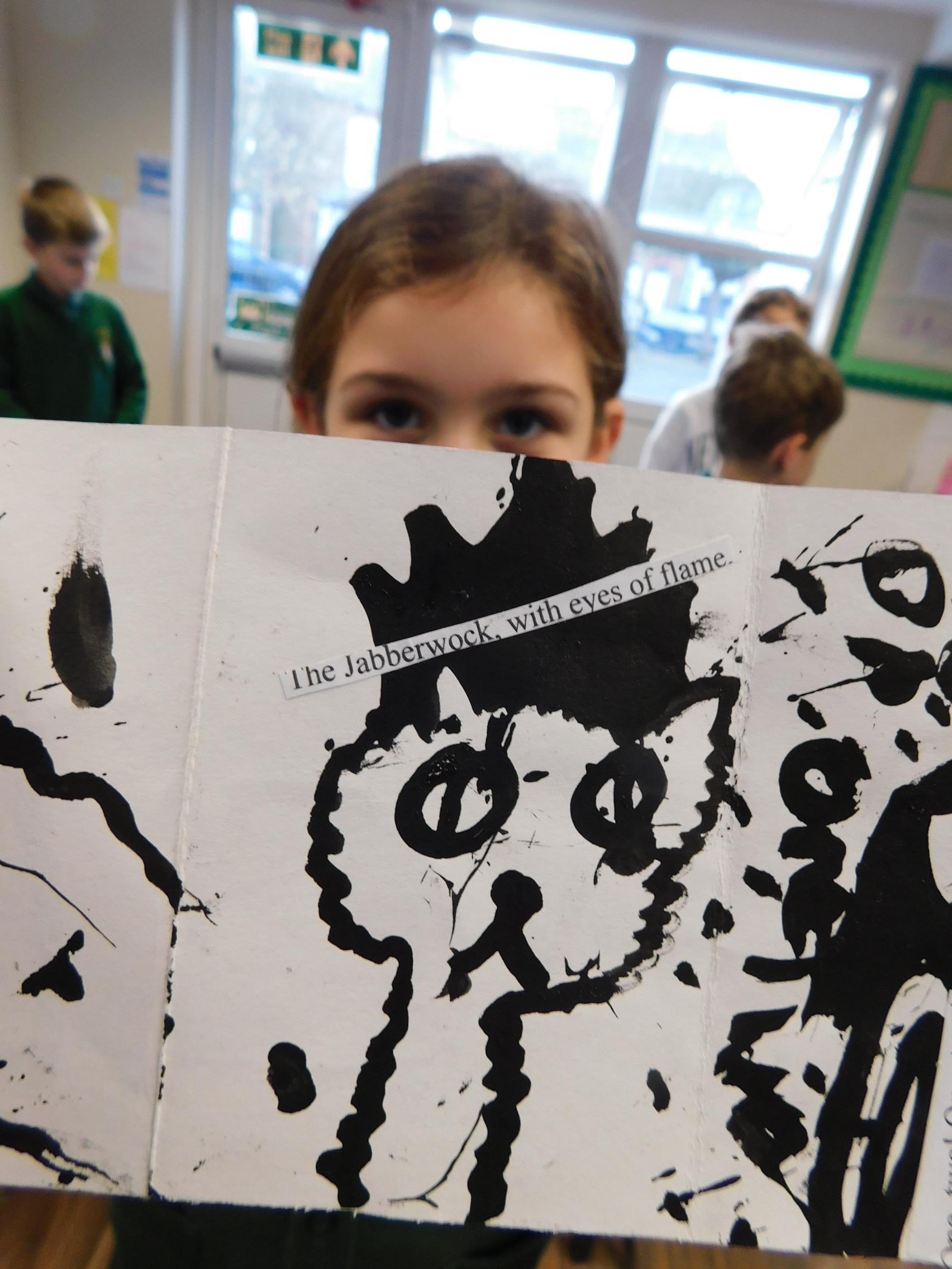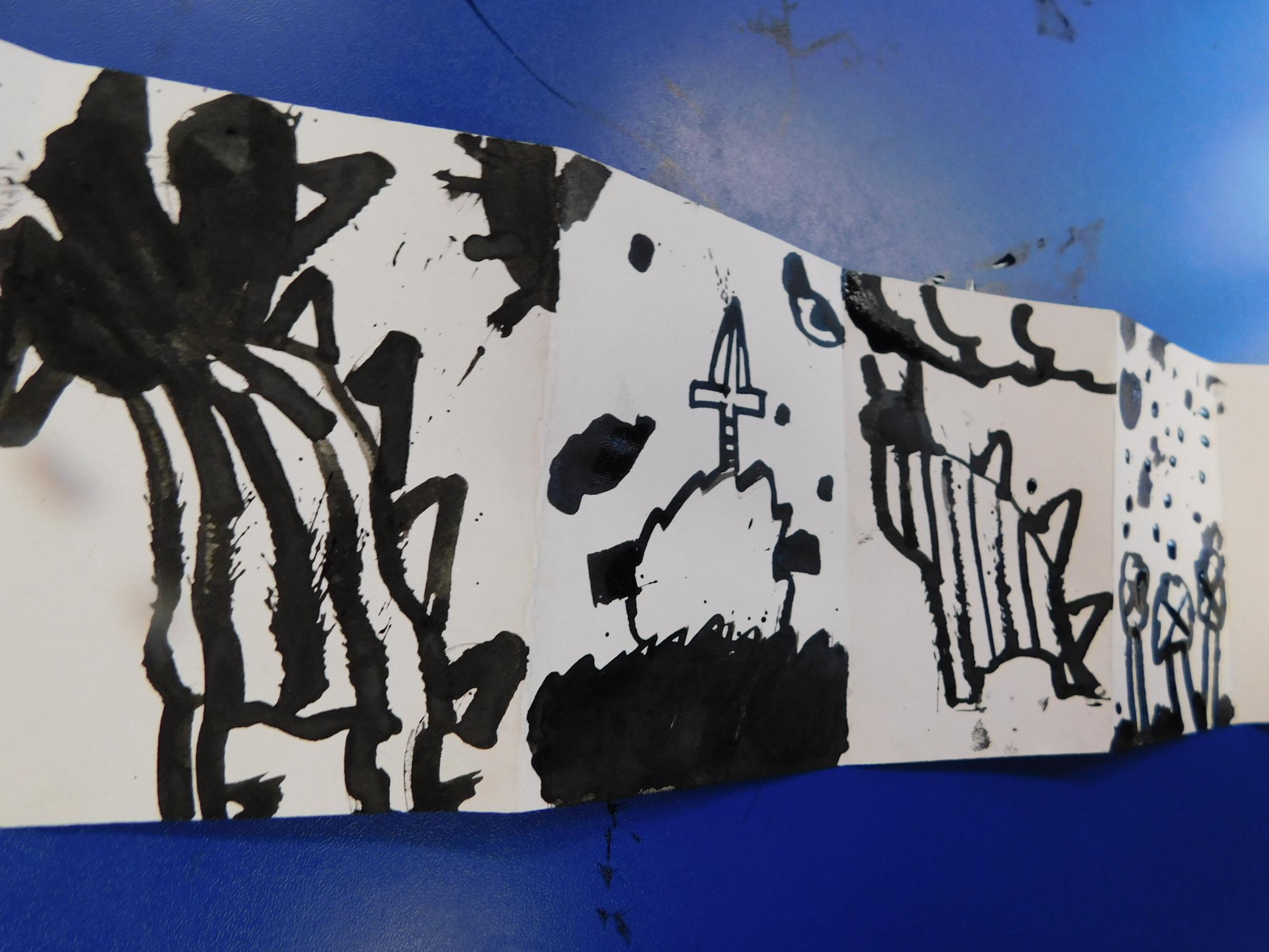Making concertina books and illustrating the 'Jabberwocky' poem from imagination using quills and ink