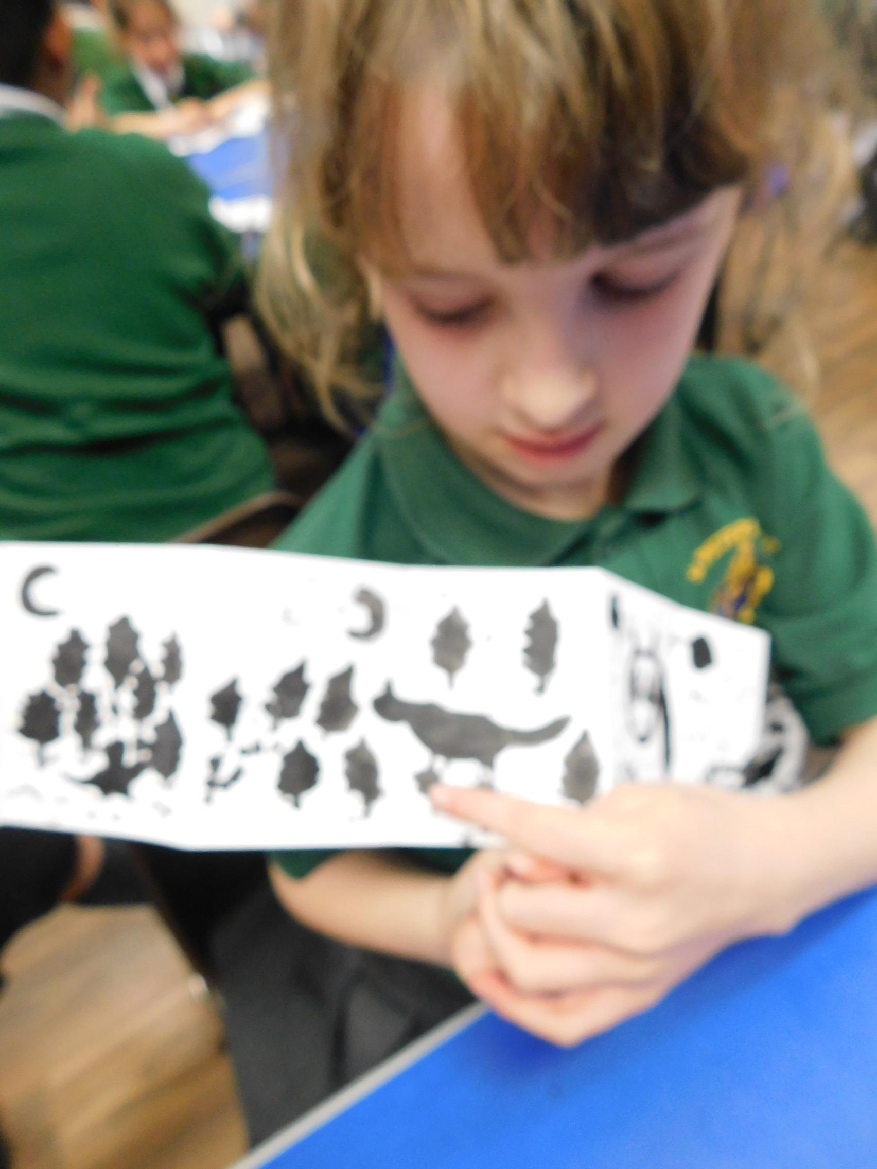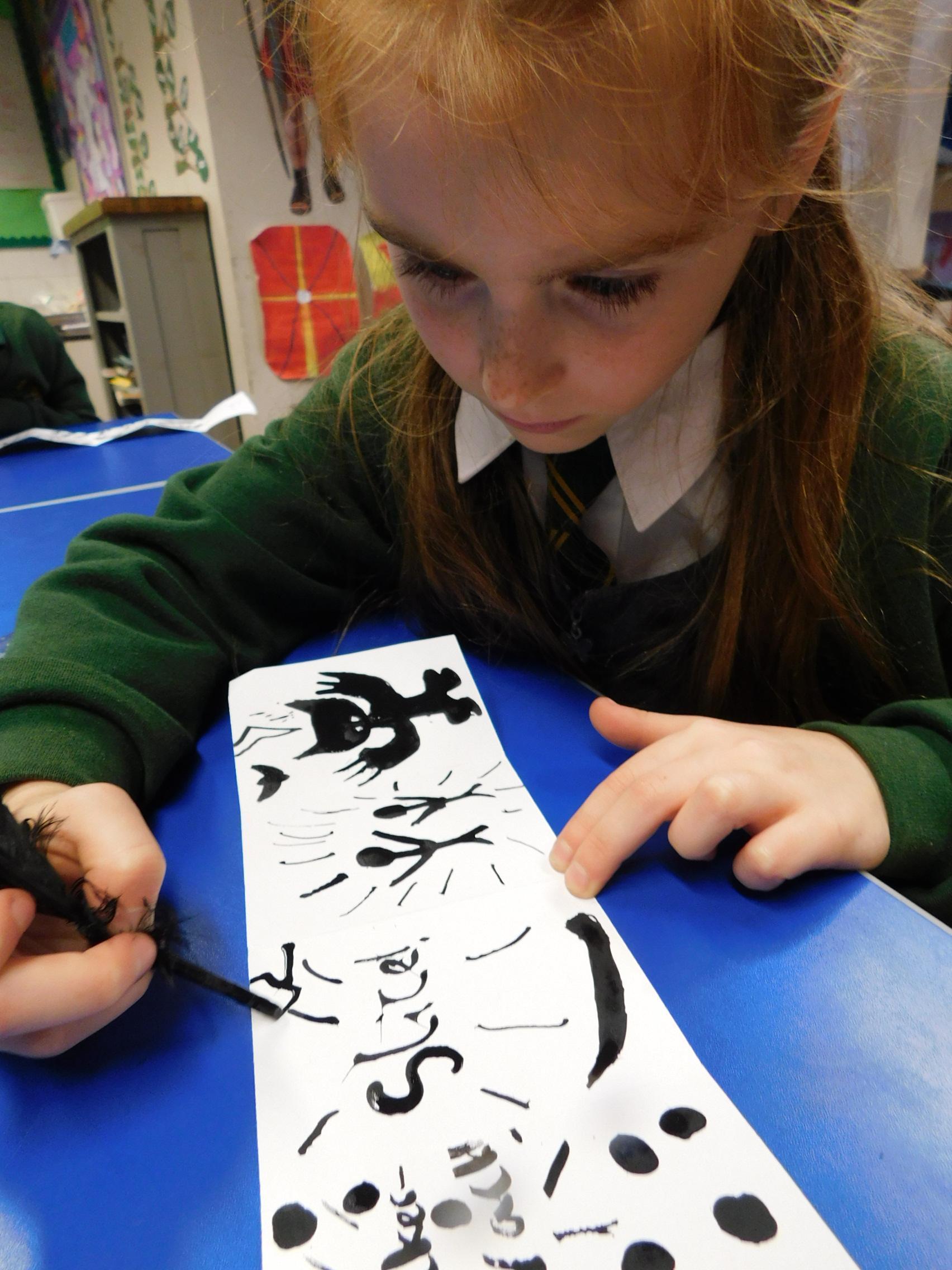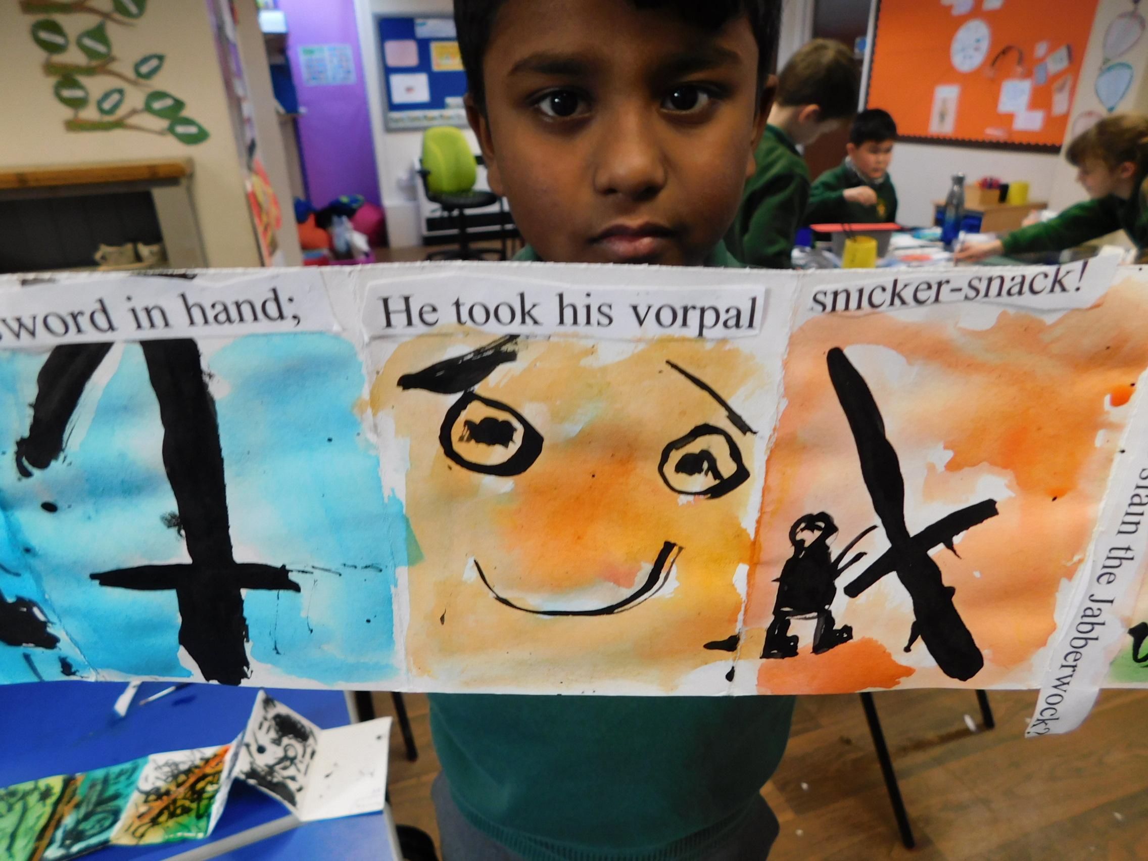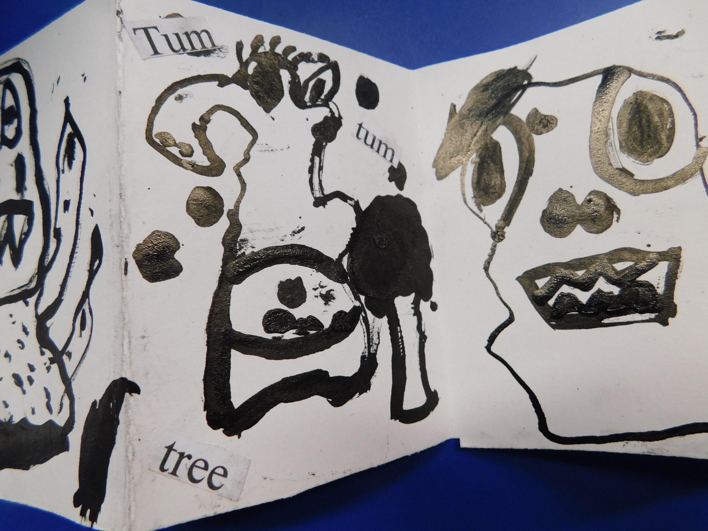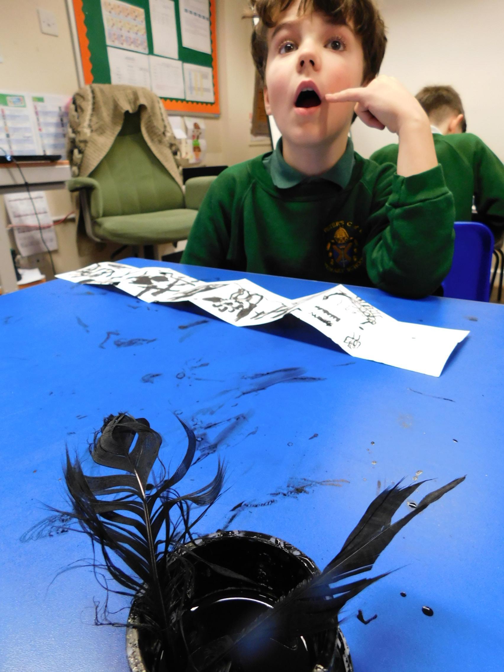 Making concertina books and illustrating the 'Jabberwocky' poem from imagination using quills and ink