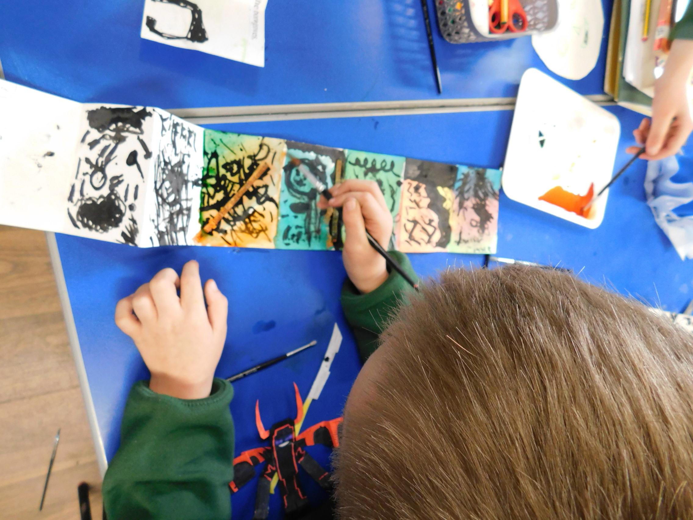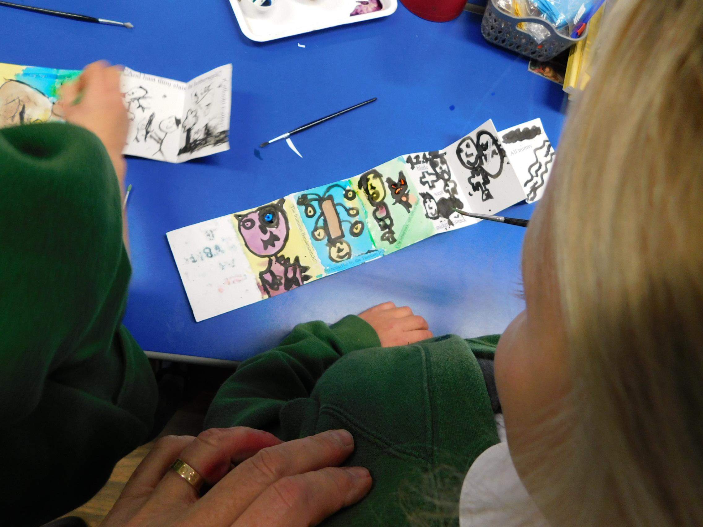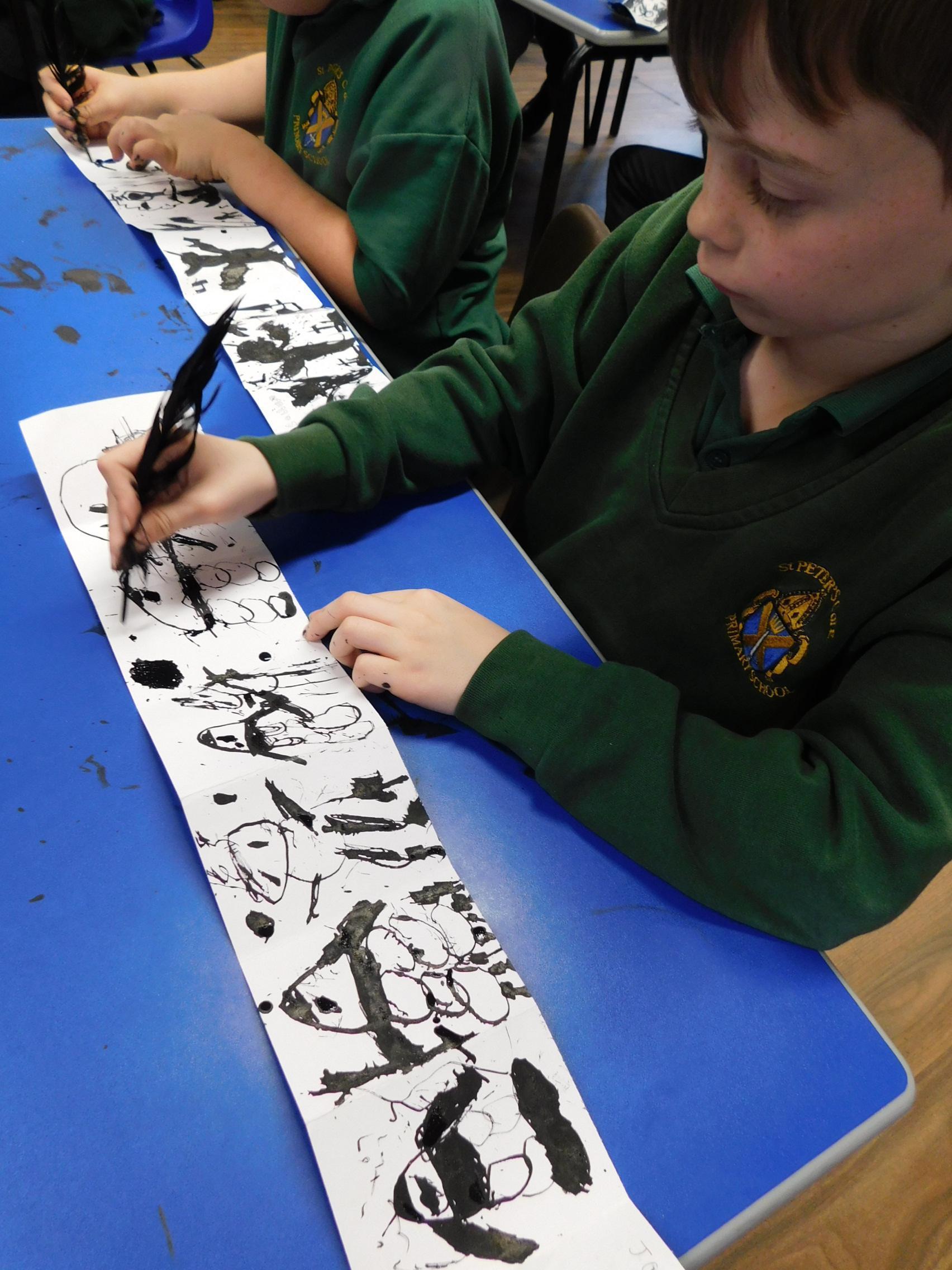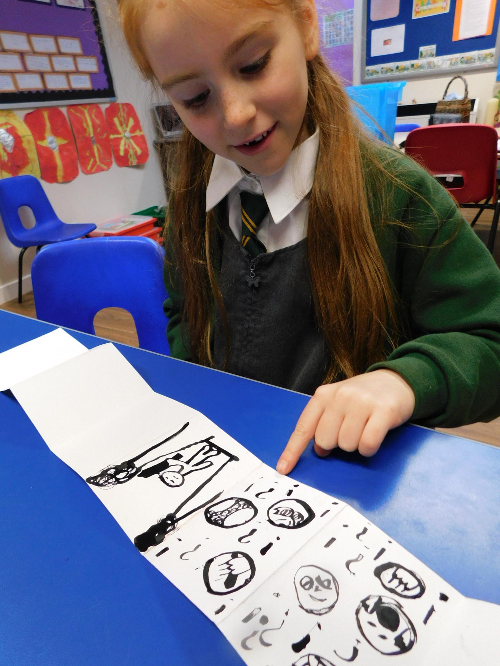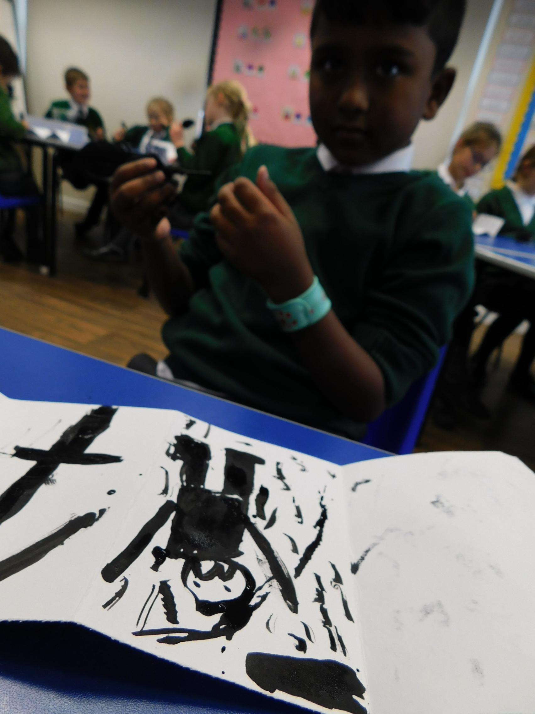 Making concertina books and illustrating the 'Jabberwocky' poem from imagination using quills and ink