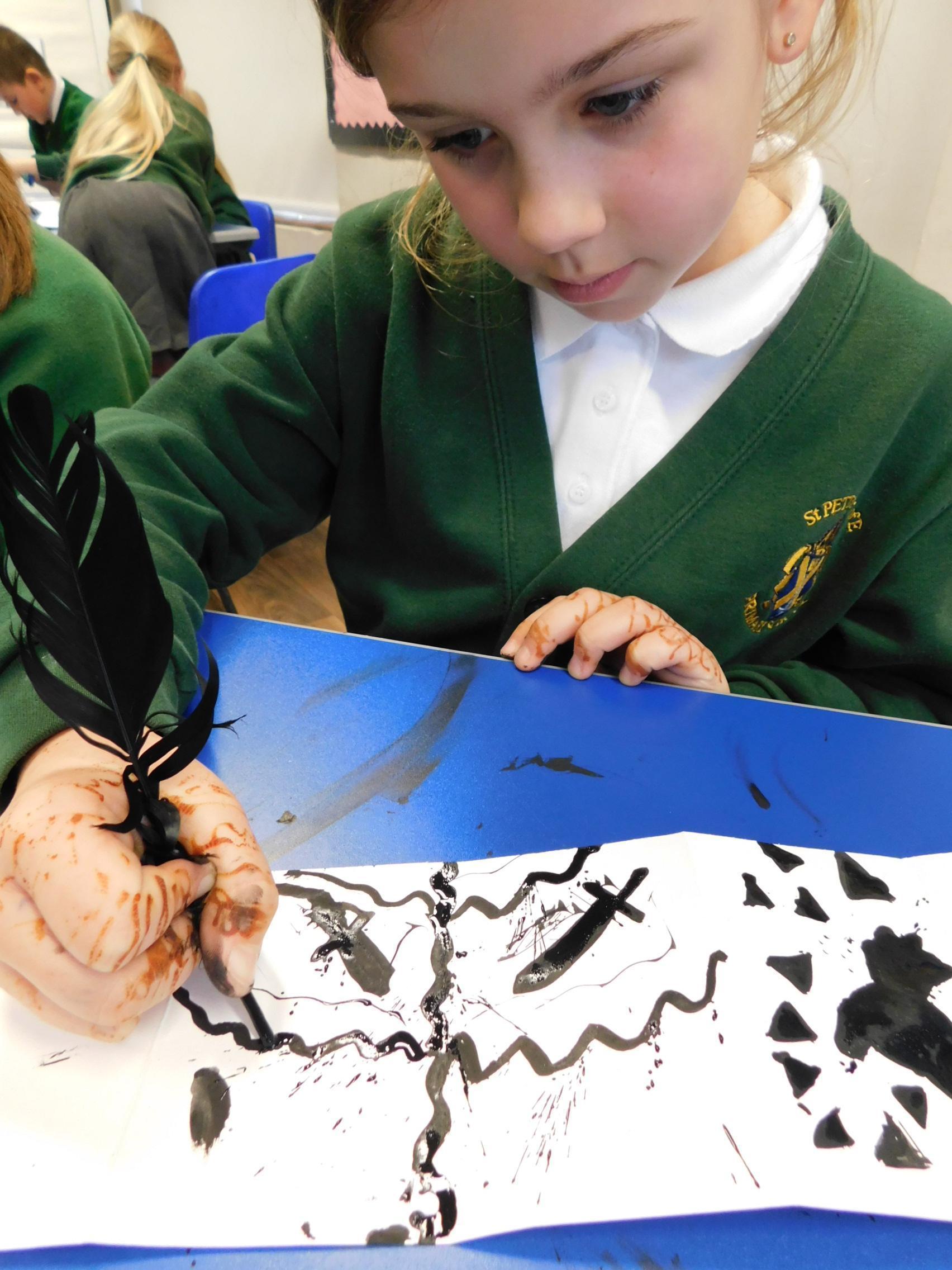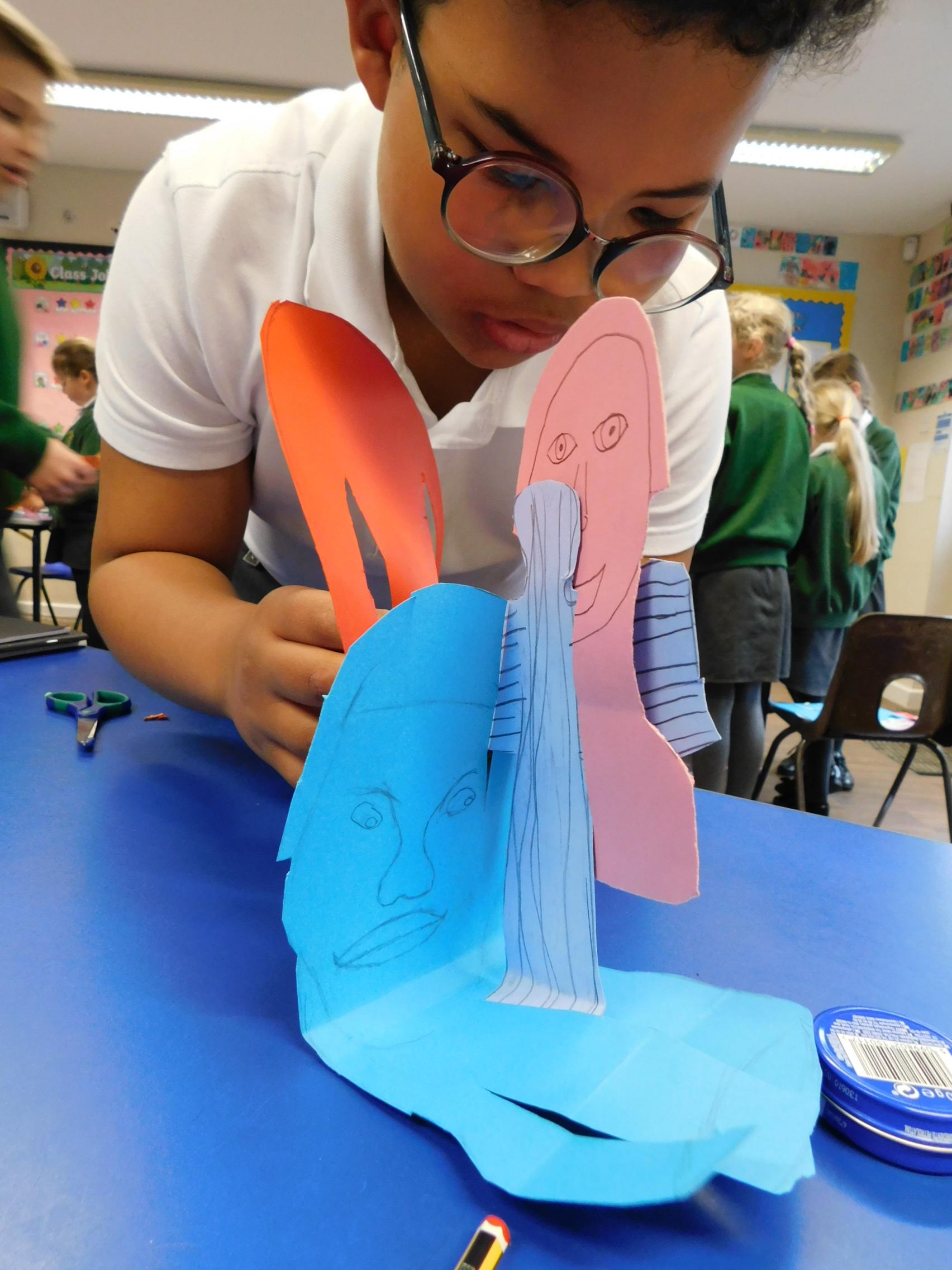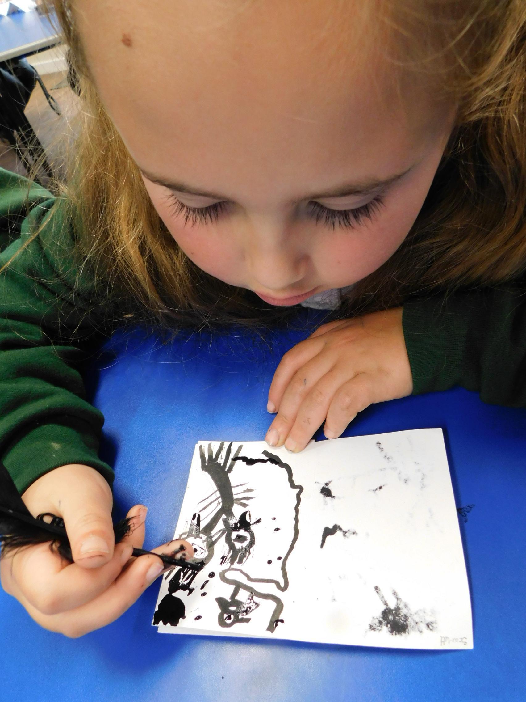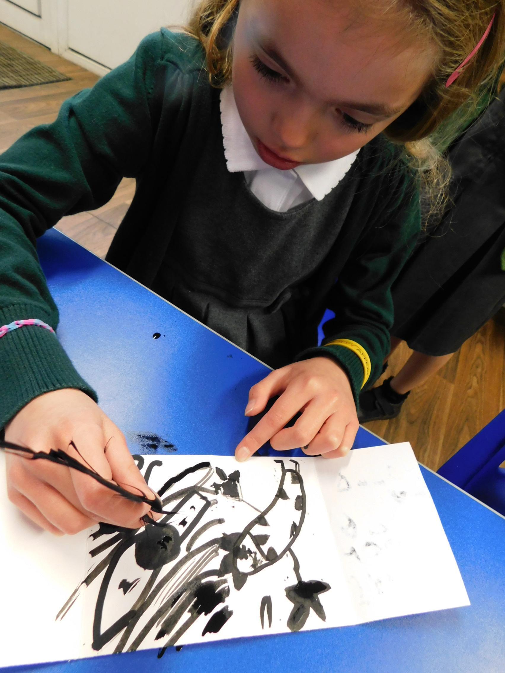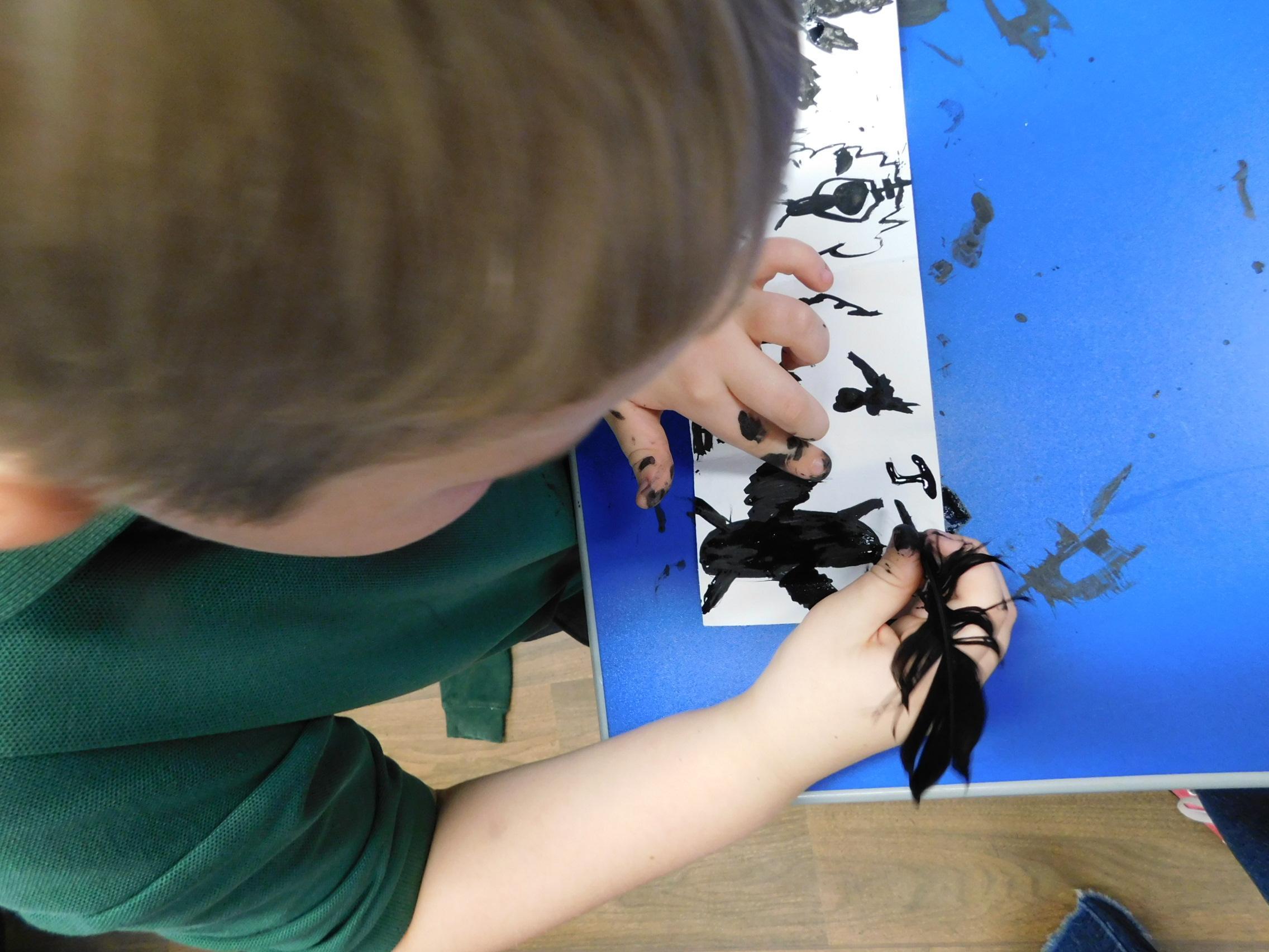 Making concertina books and illustrating the 'Jabberwocky' poem from imagination using quills and ink