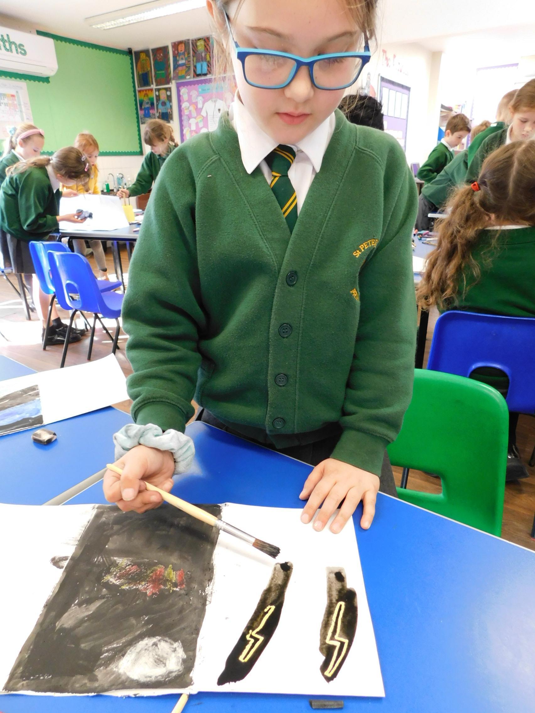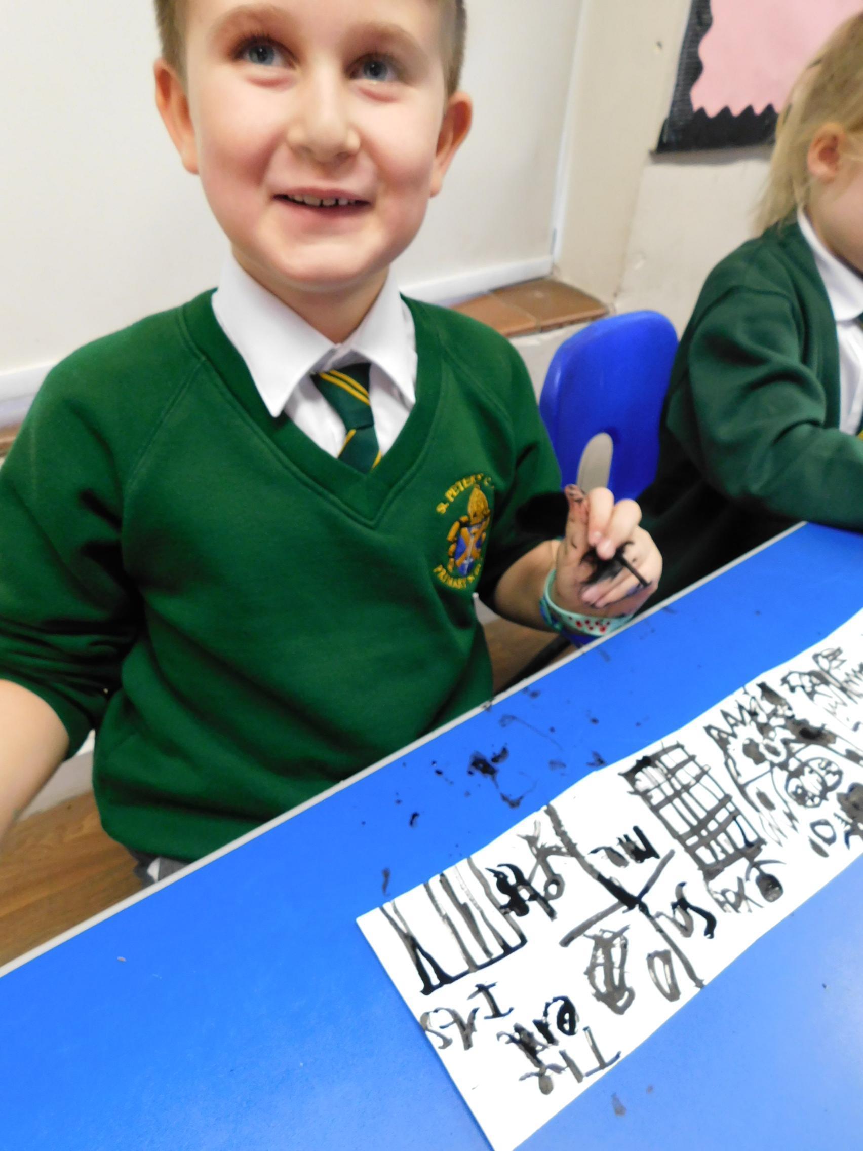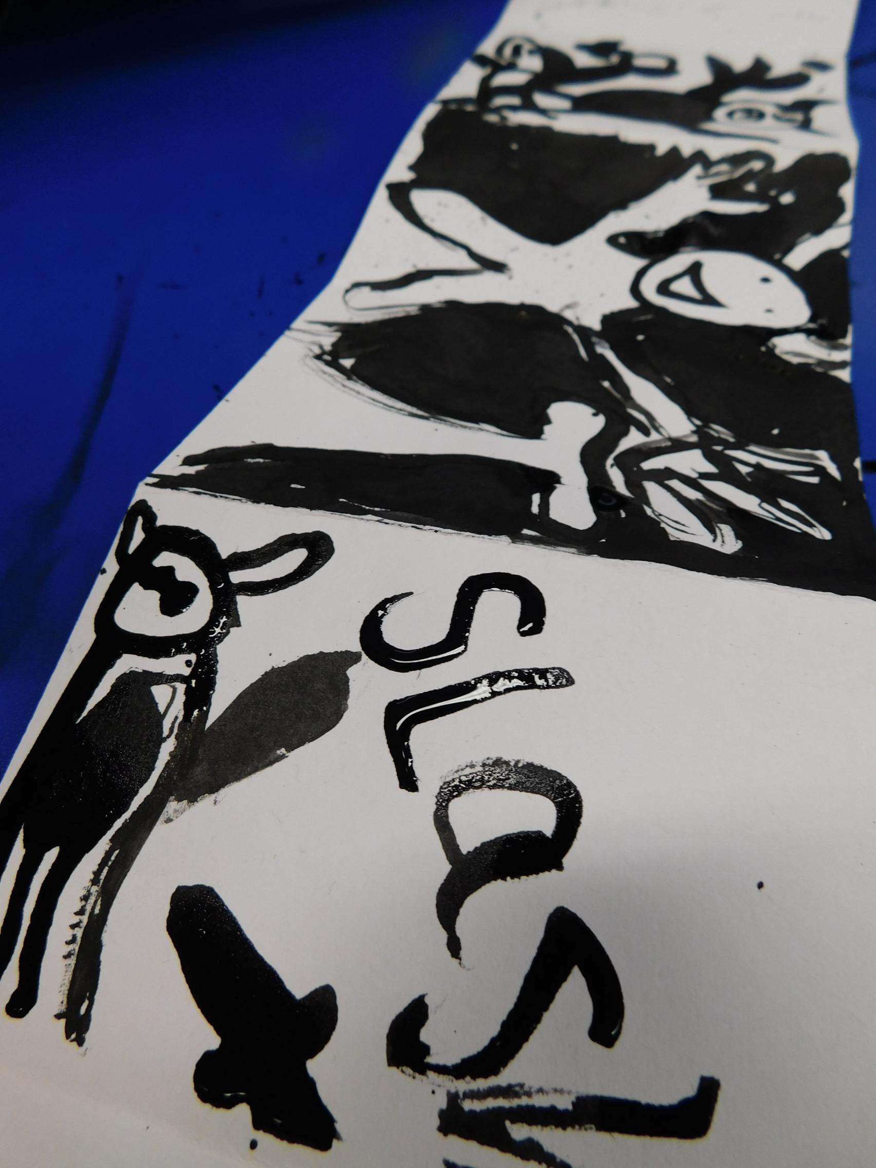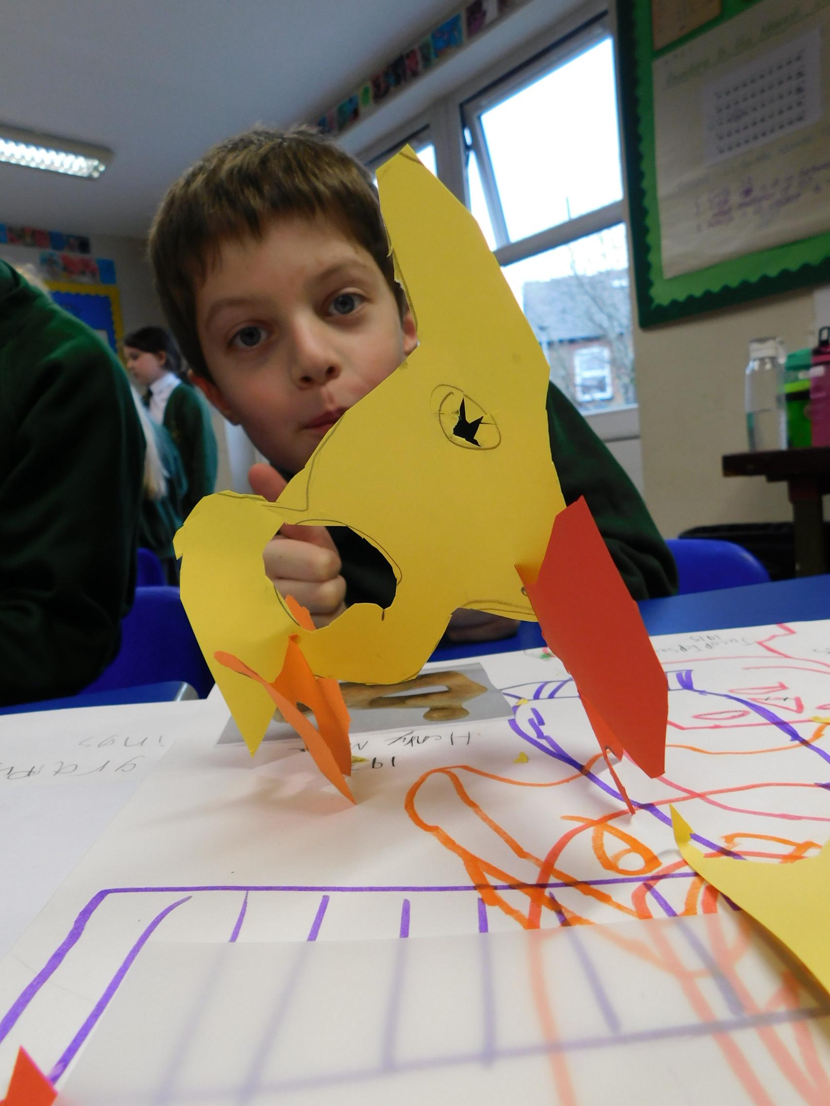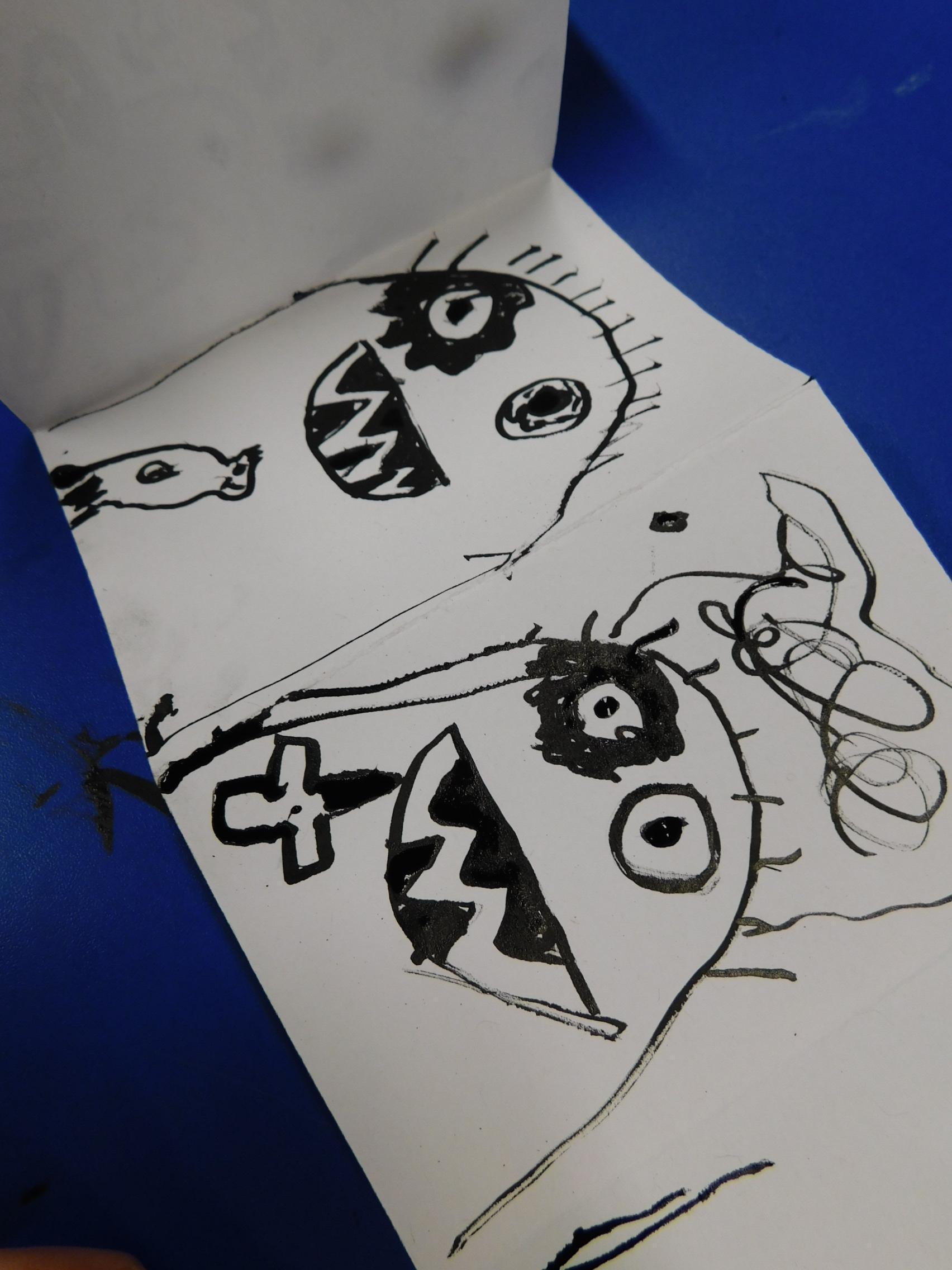 Making concertina books and illustrating the 'Jabberwocky' poem from imagination using quills and ink