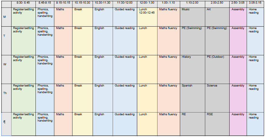 PE will take place on Tuesday and Wednesday. Please come into school wearing your PE kit on these days. Please note the Tuesday PE slot will be swimming.